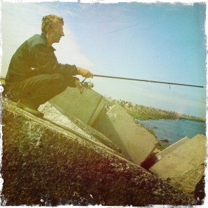 Toen kwam er een een rugzakje voorbijgedreven. Een mevrouw had ‘m per ongeluk in het water laten belanden, zodat ik een momentje later met m’n strandhengel en een plug op jacht was naar een tas. Het lukte ‘m te haken, maar de eerste poging schoot los. De tweede keer raak leek goed te gaan, ware het niet dat m’n lijn (40/00 nylon) brak bij het -voorzichtig, want zwaar enzo- binnendraaien. Ik gaf het even op, en de tas was bij de volgende visser in het vizier. Het lukte hem wel het ding binnen te krijgen, en m’n plugje hing er nog aan, dus die had ik weer terug.