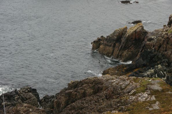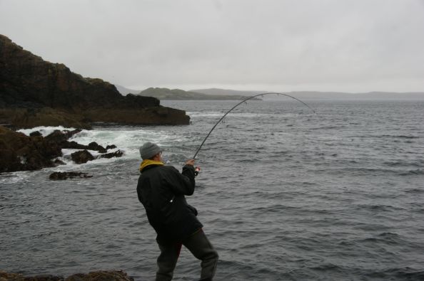 Een half uur durende klim- en klauterpartij door baggerige rotsen leverde een prachtige pollak-stek vanaf de kant op, gedoopt: de Wasmasjien, een diepe inham, waar krachtige stromingen liepen.