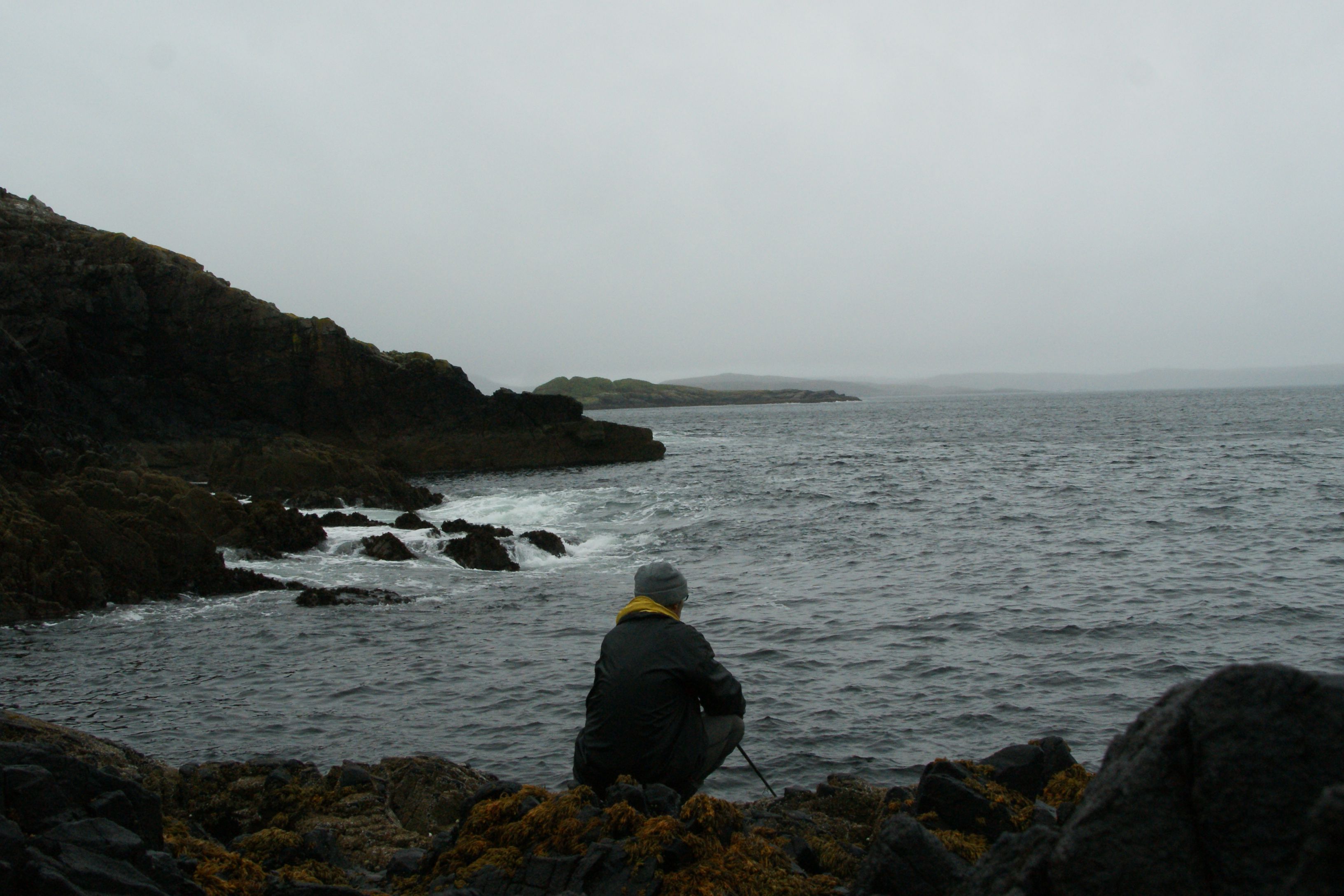 Ook vissen op een naburig meertje met een kortbij gelegen monding in zee leverde behalve een mooi plaatje mij geen vis op. Wel het verlies van m’n geliefde vispetje na een uitglijder over een gladde steen. Gelukkig niet diep genoeg gevallen voor water IN het waadpak….brr.