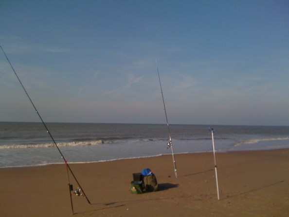 De ochtend begon voor mij veelbelovend, C13 bevond zich midden voor een grote mui en het water was opkomend. Veel andere deelnemers bij mij in de buurt moesten zich door een diep zwin terugtrekken en vervolgens over de redelijk brede bank heen gooien. Ik hoefde slechts over een vlak strand m’n spulletjes wat terug te dragen 🙂