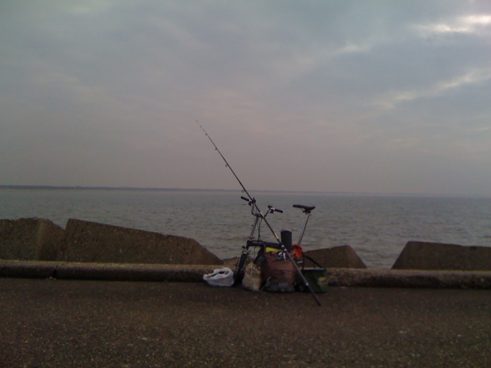 Vol verwachting vandaag de pier opgezocht: de scharren zouden opgestapeld liggen. Nu is de schar bij ons een graag geziene gast op het bordje, dus het idee was gericht een flinke berg scharren te gaan vangen. Een plekje in de bocht naar de buitenkant opgezocht en daar met één hengel aan de gang gegaan. Wapperlijnen, haakje 6, verse pieren en gezouten pieren/zagers, 180 gram ongeankerd. Ik begon namelijk rond laagwater. De stroming is dan nog niet zo sterk of zelfs afwezig, zodat ongeankerd lood goed blijft liggen. Het zou rond 18.00 hoogwater zijn.