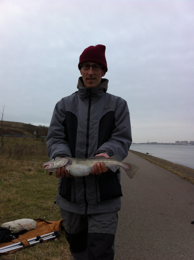 Ik heb er sinds m’n eerste keer vissen in de Nieuwe Waterweg, een jaar of vier geleden, op moeten wachten, maar het is gebeurd. Ik heb m’n eerste vis in deze stoere stroom gevangen! Een mooie gul van ruim 50 cm is het geworden, voorwaar een mooie eersteling. Ik heb nu een keer of acht in de Waterweg gevist (kunstaas-sessies meegeteld).