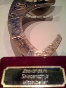 Dat bleek de enige maatse vis van de wedstrijd te zijn, de wedstrijdwinst voor mij en dus ben ik winterkampioen geworden. Om deze geweldige prestatie – er stonden drie toppers van zeevissen.com mee te vissen- een beetje te relativeren: Van de zes wedstrijden in deze verder prima georganiseerde competitie zijn er twee afgelast (teveel wind dan wel teveel graden onder nul). In de vier wedstrijden heb ik vijf maatse vissen weten te vangen. De andere deelnemers scoorden 3 á 4 maatse vissen. Gaandeweg de competitie kwamen er helaas minder vissers opdagen, zodat elke keer aantreden en één of twee maatse vissen vangen genoeg was voor de eindzege. Behalve de laatste wedstrijd is er trouwens heus wel vis gevangen, echter veelal ondermaats. En ja, die ene bot van vandaag, die kon gewoon maar in één haakje bijten en dat werd de mijne. De beker staat keurig op de schouw