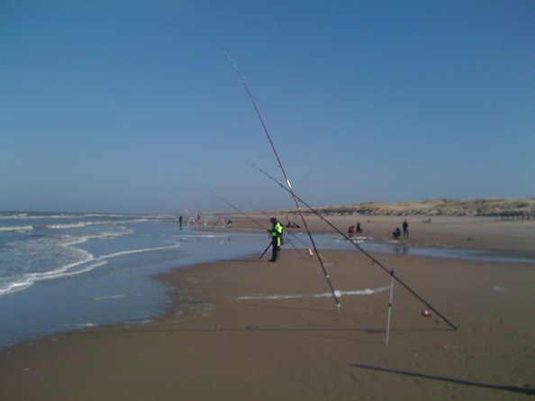 Vandaag een dagje vissen met het Zeevistips-team op het strand van Groote Keeten. Zonnetje, weinig wind en een lang afgaand tij. De eerste lijnen gingen rond 10.00 te water en rond 16.00 zou het laagwater zijn.