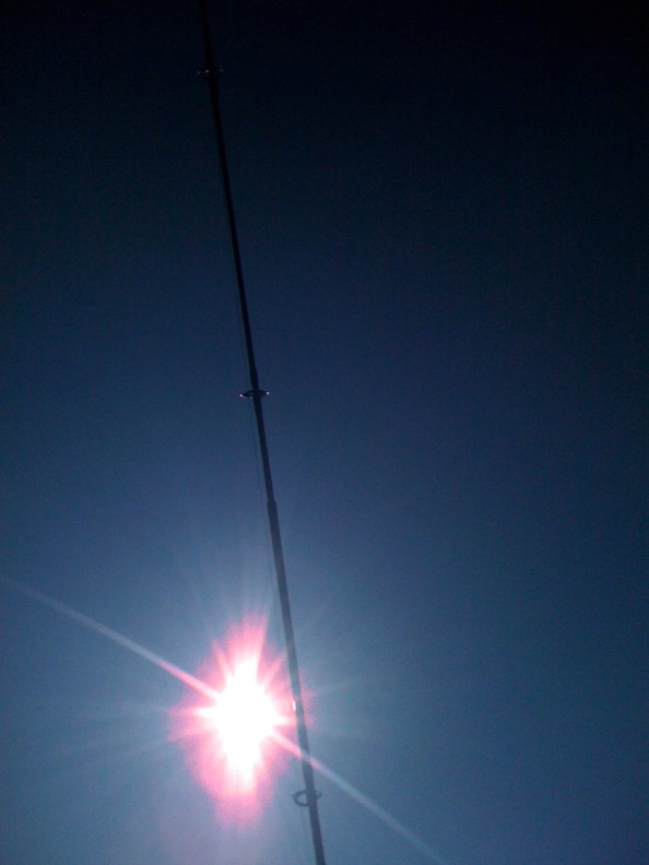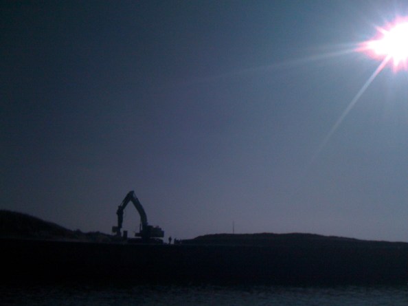 Hoogwater om 16.20, zonnetje, rustige oostenwind draaiend naar vanalles. Rond 12.00, nét na laagwater, aangekomen op de Zuidpier en hopend dat de pier toegankelijk was. Helaas pindakaas, d’r werd druk gewerkt, dus de Oude Kop dan maar. Aangesloten op het puntje, er stond een man of zes. Hm, wat te doen? Ik had 100 verse pieren en een assortimentje gezouten spul. De pieren waren vooral bedoeld voor mooie gullen en die verwachtte ik hier en nu niet echt. Besloten met een paternoster (afhouder, wapper), kleine haakjes, zoute mesheft, zoute pier aan de gang te gaan. De buren vingen af en toe kleine wijting, bij mij bleef het stil. Ook met een tweehaaks paternoster, nóg verder weg, ook niet. Toen het water inmiddels flink aan het opkomen was, en ik toch maar met wat verse pieren ben gaan vissen kwamen bij mij ook de eerste aanbeetjes, en uiteindelijk een klein wijtinkje. De buren vingen ze inmiddels in trosjes van drie. Overgeschakeld op een grote haak aan een lange wapperlijn, 20 meter uit de kant. Na een uurtje stilte vond ik het mooi geweest. Dit was een sof, morgen zal alles beter gaan.