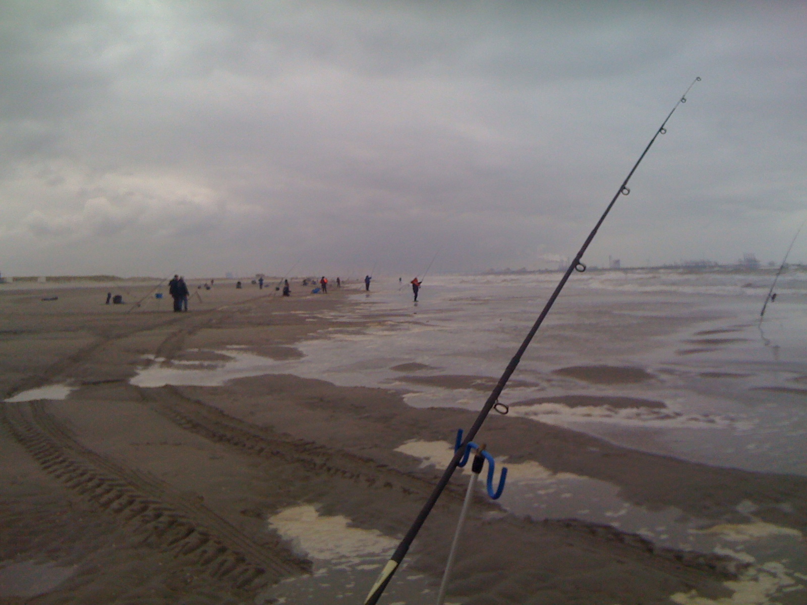Met het zeevistipsteam hebben we meegedaan aan deze grote wedstrijd: vijf vakken, meer dan 30 deelenemers per vak. Ik stond in het A-vak en mijn nummer 22 bleek vlak voor de strandopgang te liggen. De wind was noordelijk. kracht vier tot vijf: dwars op het strand dus. Er was een flinke branding met iets ‘zwinnerigs’ voor m’n voeten. De deelnemers stonden redelijk dicht op elkaar, dus ver weg vissen viel voor mij af. De hoeveel lijn die uit zou staan, gecombineerd met de wind en de stroming en de beperkte afstand tussen de vissers, zou een garantie voor het in de knoop raken van de lijnen zijn. En ik houd niet van het uit de knoop halen van lijnen met de buren.