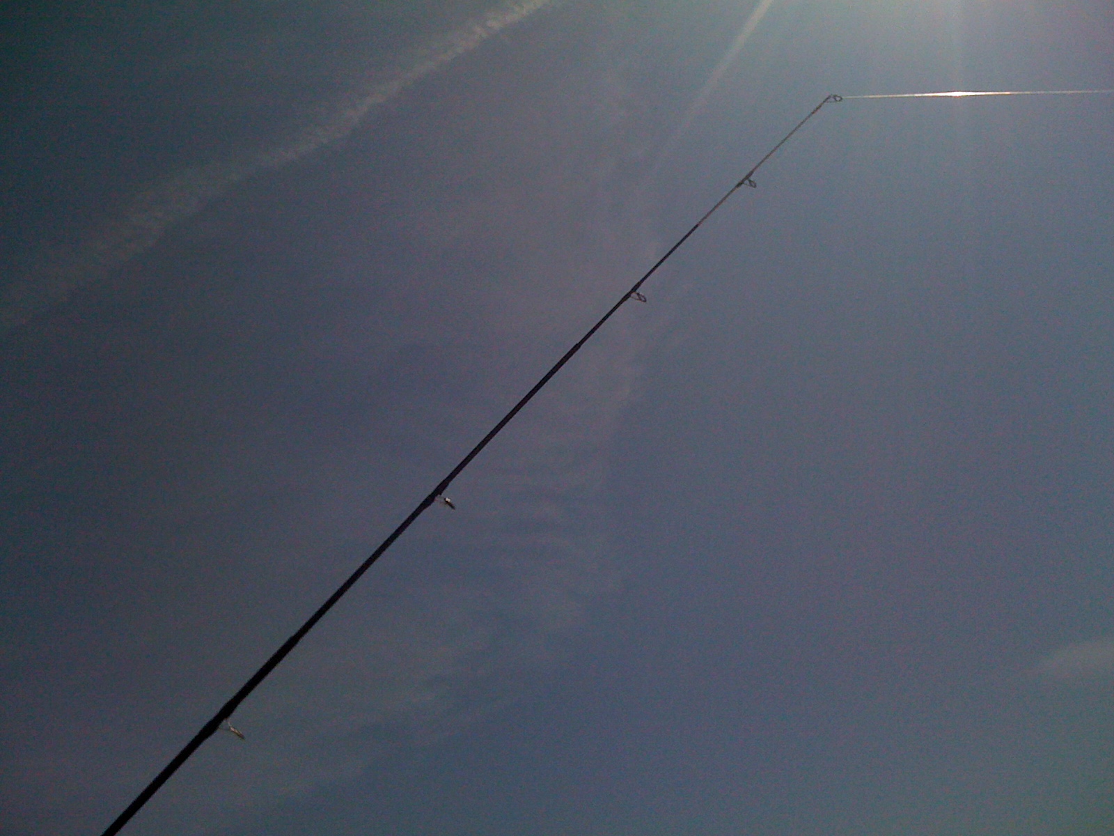 De tweede worp leverde wéér een aanbeet op, en opnieuw vast. Deze keer niet los te krijgen. Jammer. De derde worp was ook raak, nu een ondermaatse, rond de 30cm. Helaas diep geslikt, en helaas kwam-ie weer bovendrijven. De meeuwen hadden er een beetje moeite mee.