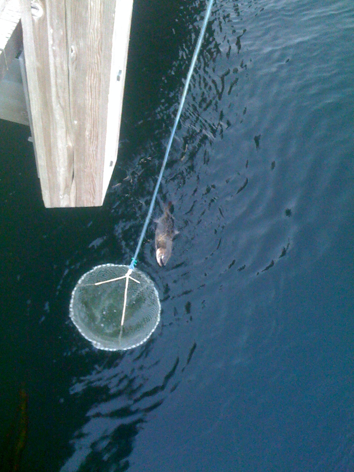 Het was leuk te zien, samen met veertig andere toeschouwers, hoe deze grote vis na ruim twintig minuten spanning en sensatie binnengebracht kon worden.