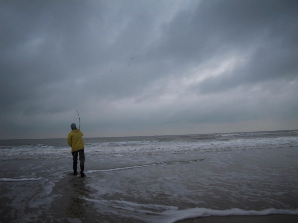 Met een schreeuw -want iemand was de toeter vergeten- werd de wedstrijd om 10:00 gestart. We visten met afgaand en het laatste half uurtje opkomend water. Er leek zich een mooie mui voor me af te tekenen, dus m’n gevoel was best goed. Dat bleef ook goed, maar na twee uur had iedereen al gevangen, de een meer dan de ander, vér weg, dichtbij, tussenin. Iedereen viste met wappers, de een wat langer dan de ander. Er waren geen krabben of andere vreterij. Zowelde linkerbuurman al ik, die hetzelfde deden, stonden nog op een 0. Ik heb alle combinaties met aas geprobeerd. Even later bleek er dan toch een bot (25cm) te zijn blijven hangen, ik viste nu met een verzwaarde onderlijn. Hoopvol bleef ik deze lijn vaak gebruiken, maar het bleef bij deze ene vis, m’n gemiddelde wedstrijdvangst dit jaar. De buurman eindigde op twee vissen. De rest om ons heen had tot een vis(je) of tien weten te vangen. Ook waren er regelmatig verwarde onderlijnen, ook met mij, en in een redelijke sfeer werd dit goed opgelost. De vérwerpers waren vandaag in het voordeel, er kwam in onze buurt weinig vis van kort onder de kant vandaan. Vandaag dus visles gehad. En voor het eerst een wedstrijd meegemaakt waarbij de afstand essentieel was, afstand die ik dus (nog) niet haal. Op het moment van schrijven is mij de uitslag niet bekend. Ik gok dat ik rond de 200ste plaats van de 232 deelnemers ben geëindigd. Felicitaties aan de winnaars!