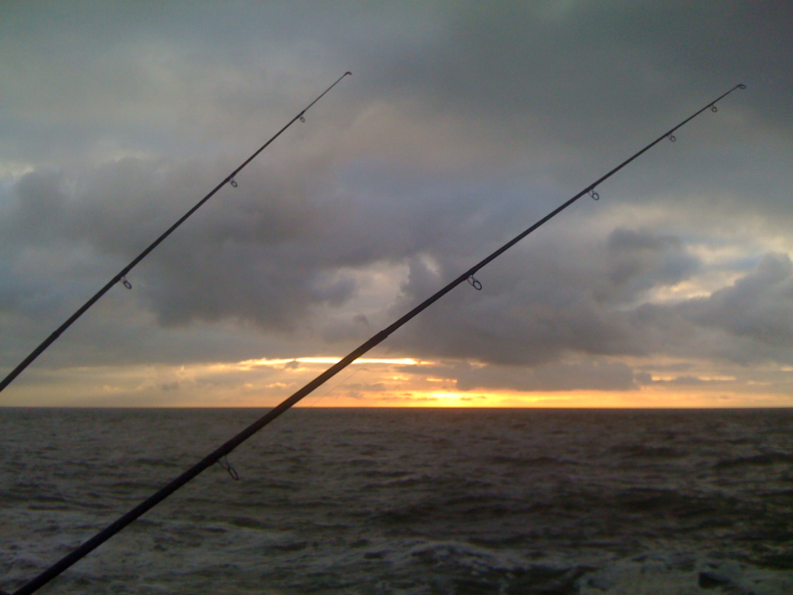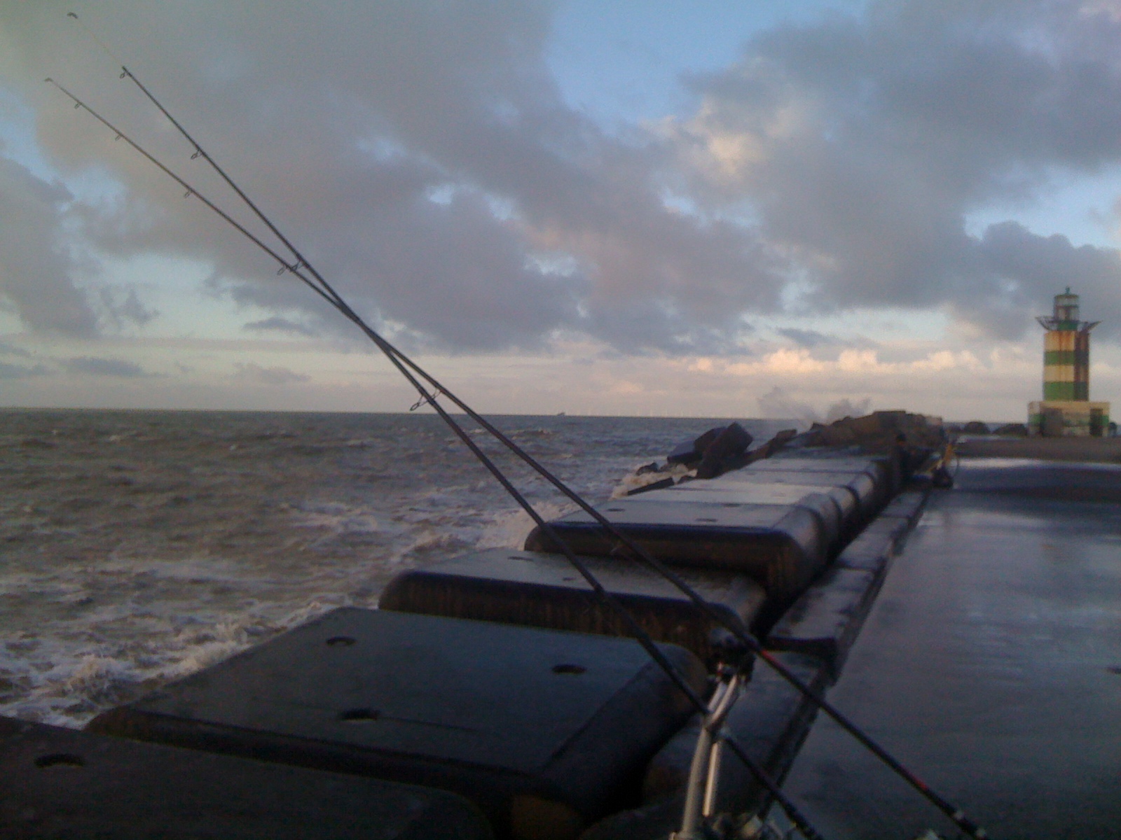 Zo, ik heb ’t even gehad met de scharretjes en wijtinkjes. De wens voor deze periode is een aanbeet uit het niets die de hengel in de steun laat stuiteren en af en toe een flinke vis die bonkend weerstand biedt. Ik ga dus de komende tijd weer lekker op gullen vissen tussen de stenen van de Zuidpier. Nicolas is gelijkgestemd. We beproefden ons geluk vandaag ‘ns vlak voor de de kop van de Zuidpier. De mooiste plekjes op de kop waren reeds vergeven, jammer dus.