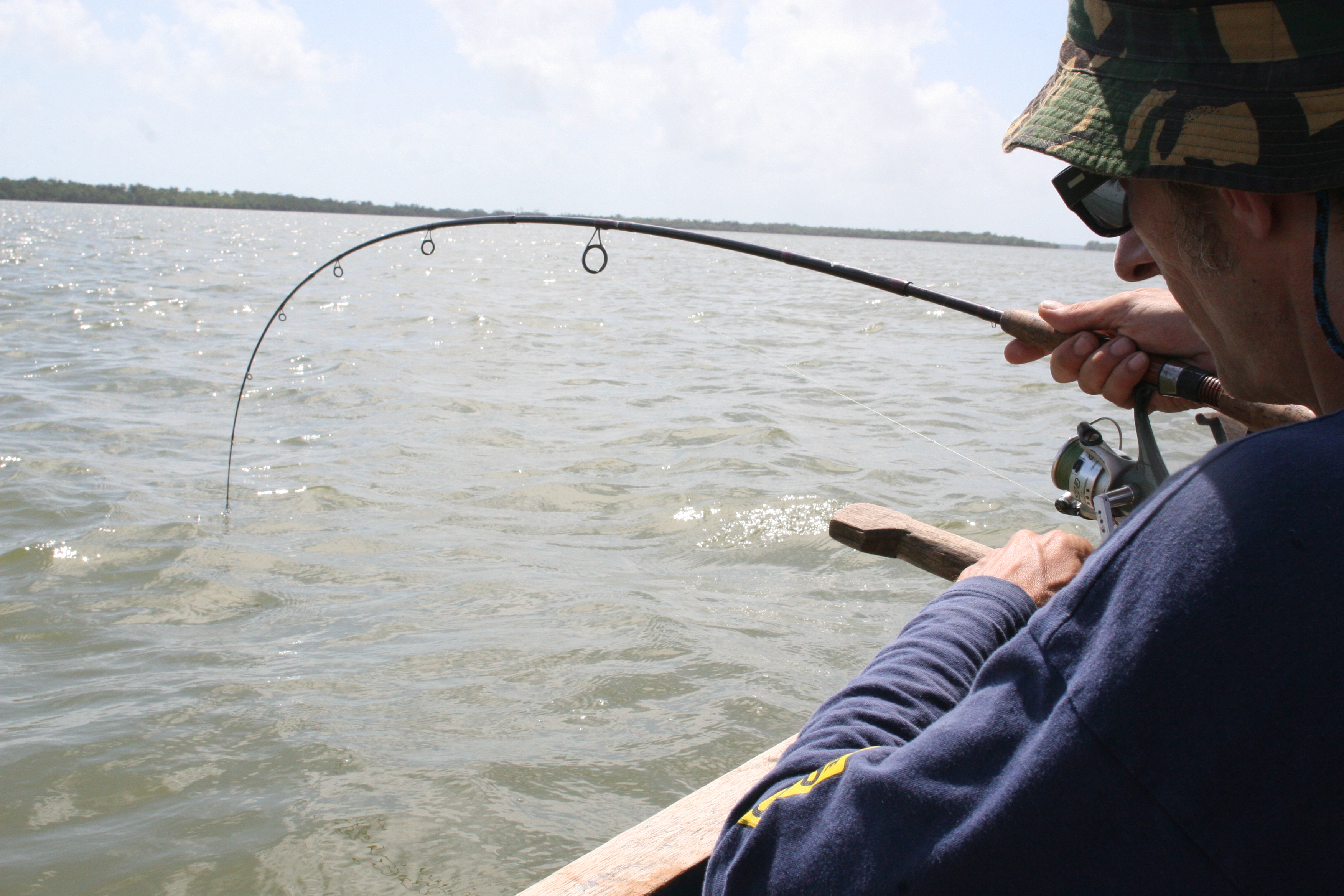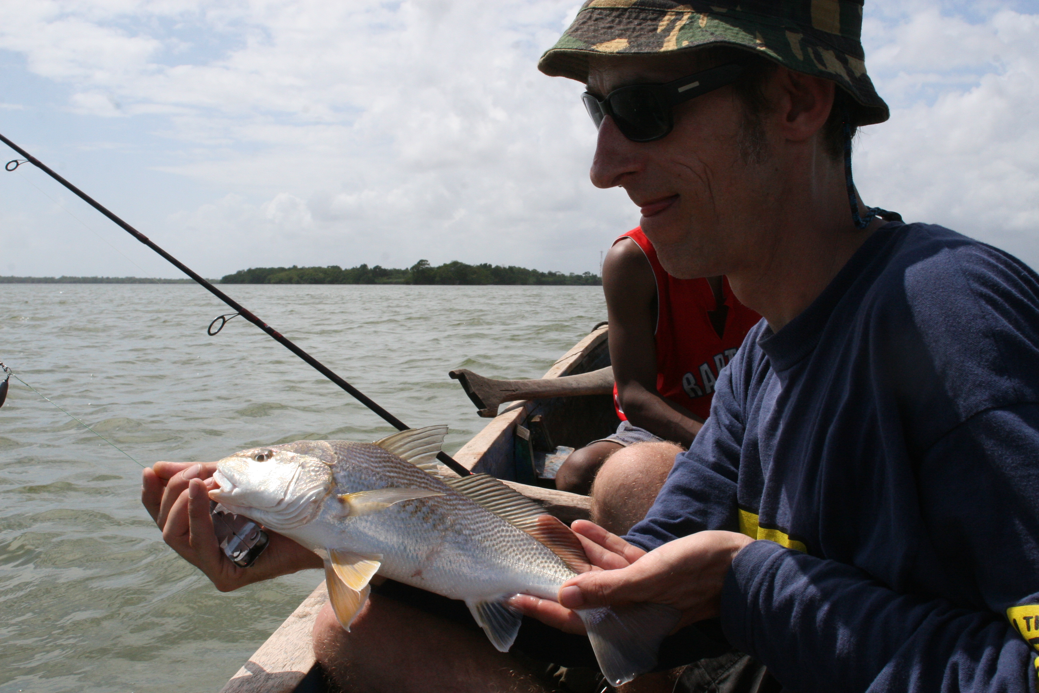 De visserij is druk en leuk, om de beurt en achter elkaar vangen: prachtige doch giftige meervallen, croakers en snook.