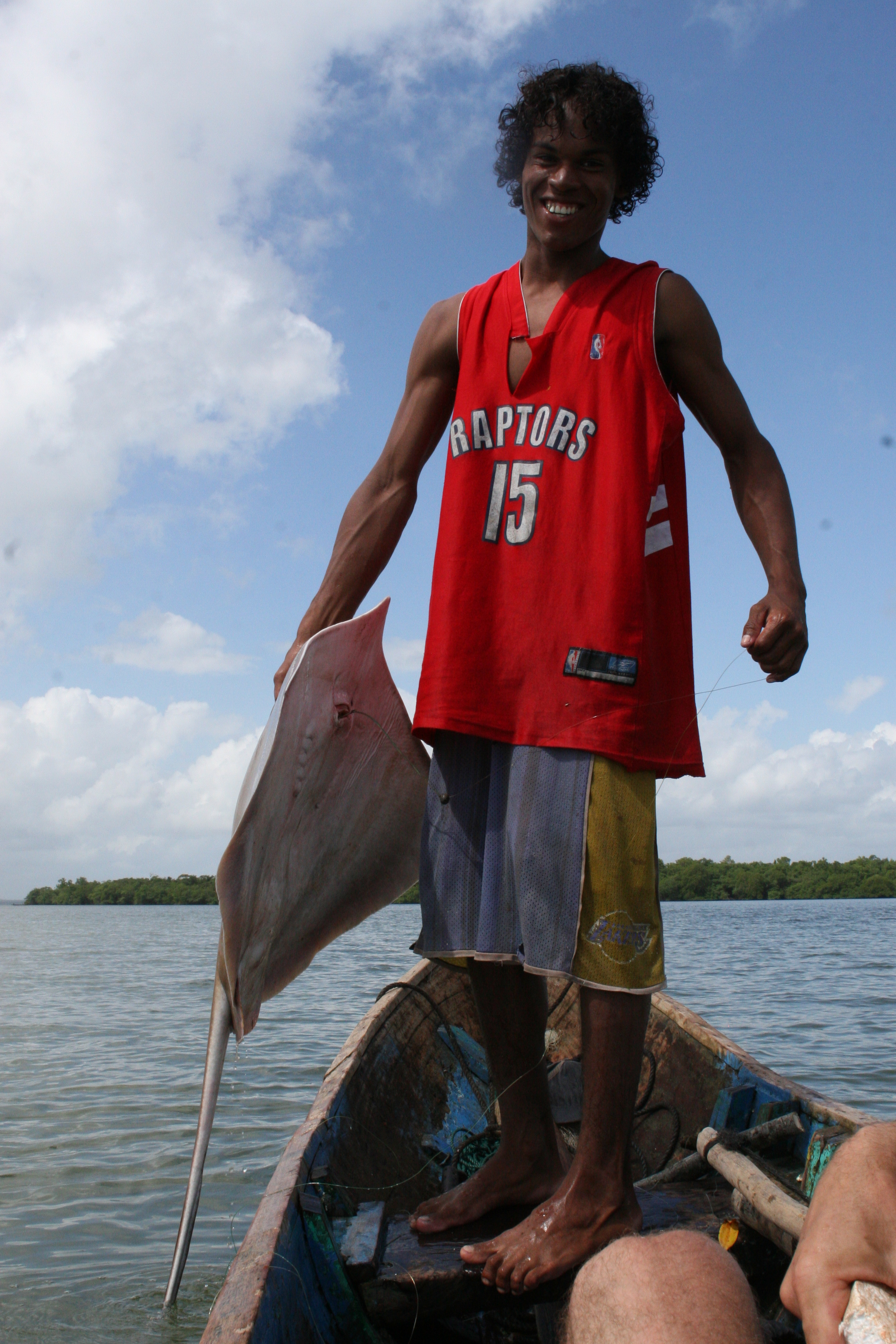Een paar dagen later maken we een tochtje met de eigenaresse van het hotel Casa Blanco en een paar zonen. Zij hoort de de Garifune, een stam bestaande uit nakomelingen van na een schipbreuk vrijgekomen slaven en indianen. Zij wonen langs de kust van Honduras, Belize, Guatemala en Nicaragua. We bezochten een aantal Garifune-dorpen en we hebben een paar uur aan een riviermonding aan de lagune gevist.