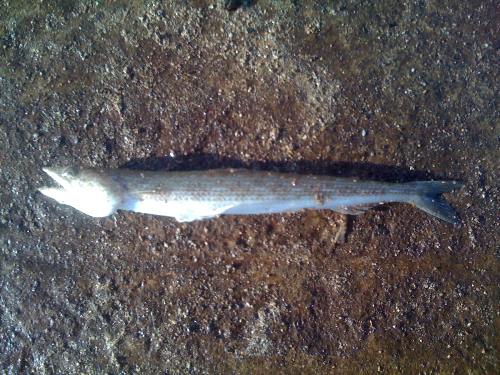 Al trollend met vliegende vis als aas vangen we een crevaille jack en een barracuda, beide ruim 70 cm.