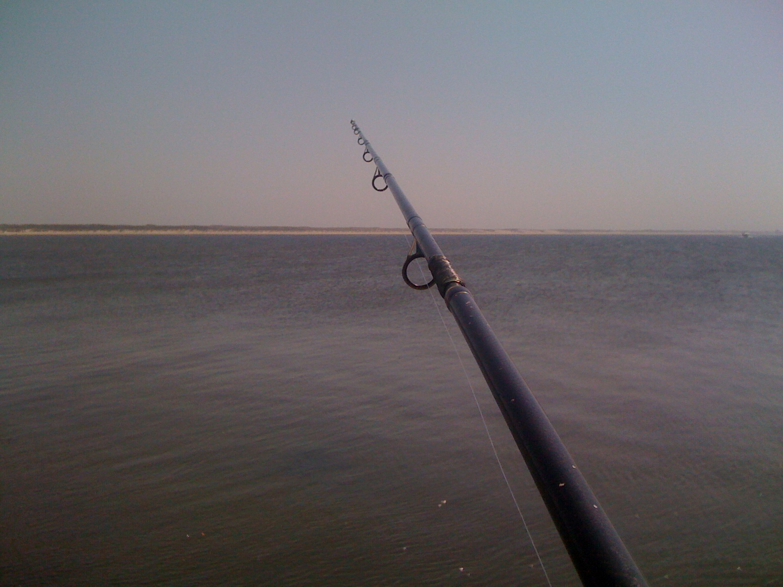 Nou, ik heb ’t weer ’s geprobeerd, een vis vangen. De buitenkant van de Zuidpier gaf vandaag mooie beschutting tegen de nog steeds enthousiast blazende noordenwind, vandaag rond kracht 4. Laag tij viel rond 11:30. Een middagje vissen uit de wind in de zon met opkomend water, ik had er zin in. Karperhengel en spinhengel mee en met de hoopgevende berichten van een school makreel vorige week aan de Noordpier in het achterhoofd liet ik vol goede moed het aas rond 12:15 te water. Vandaag zou ik toch wel wat moeten kunnen vangen..