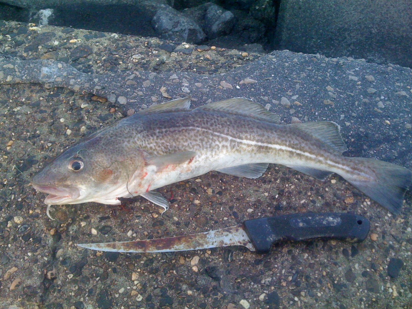 Want jawel, er is ook weer wat gevangen. De eerste vis kwam ‘uit het handje’: kleine rukjes en trekjesā¦een zeedonderpadje had de 2/0 haak gretig tot zich genomen. Beaasd met een stuk mesheft en twee pieren, ik snap dat-ie ‘m niet voorbij kon laten gaan. Zonder fotomoment is-ie snel weer gaan zwemmen.