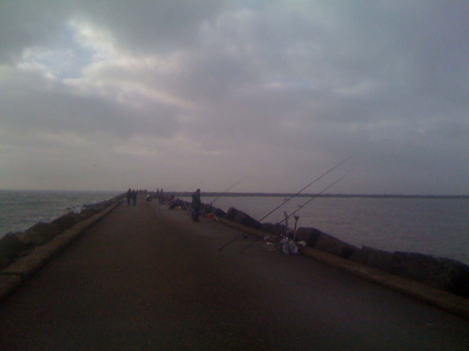 Zoals ook tijdens de vorige wedstrijd bleek, kan de visserij ook aan de ogenschijnlijk overal hetzelfde uitziende binnenkant van de Zuidpier erg ‘plekkerig’ zijn. Nummer 23 werd het vandaag en dat was in het middendeel van het parcours, theoretisch een gunstige plek. Tussen Hans en Dirk in en ik was vandaag ‘de meter’ voor een man of acht.