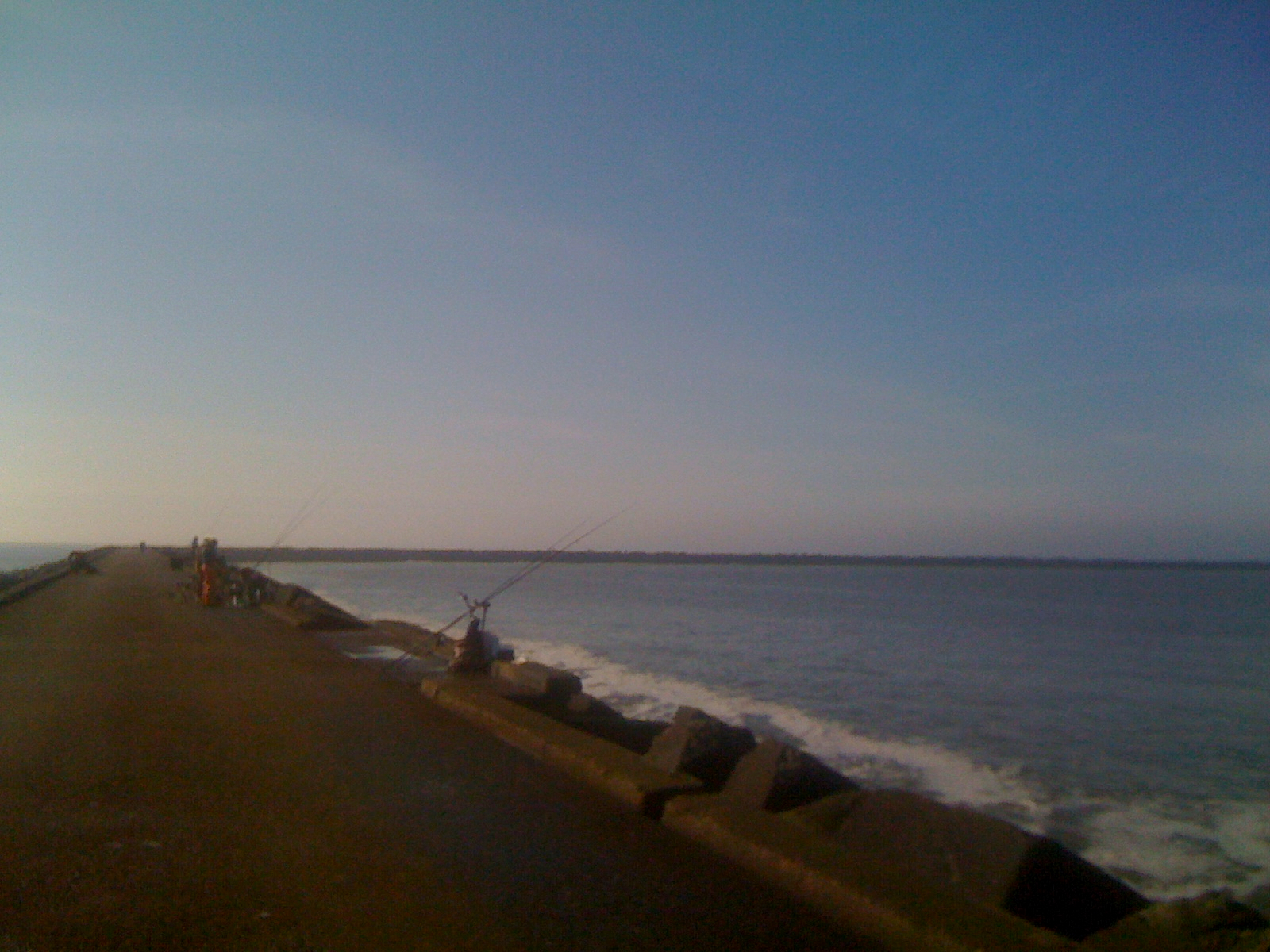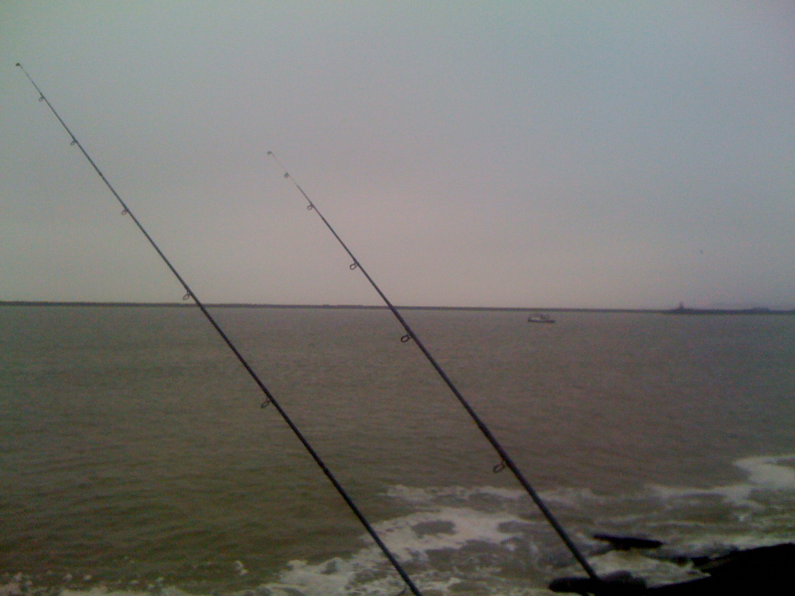 Met laag water om 12:59 deed ik het rustig aan, maar arriveerde na aanschaf van wat verse pieren rond 11:30 op de pier. Ik koos deze keer wederom voor de binnenkant. Lekker voor mij, maar ook omdat de zuidelijke wind dan lekker de lijnen uit de stenen zou houden. Het was wat grijs.
