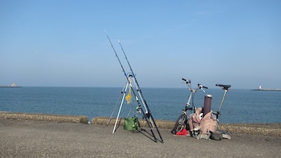 Het tij viel nagenoeg gelijk met de wedstrijdduur: laag water om 10:10 uur en hoog water om 14:32 uur. De vissessie met Reino afgelopen donderdag, had mij geleerd dat de botten tussen de pieren zijn gearriveerd. En dat er nog steeds gulletjes voor de kant zwemmen met altijd kans op een uitschieter.