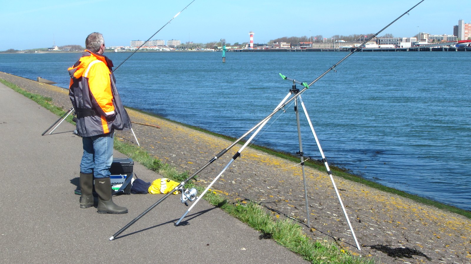 Eelco was weer eens in het land en af en toe moet je ook eens ergens anders vissen dan op de Zuidpier. Het werd weer eens een dagje Europoort. Hoog water om 11:34 (+78) en laag water (-54) om 18:06 en wij stonden rond 10:00 klaar om te vangen aan de Nieuwe Waterweg.