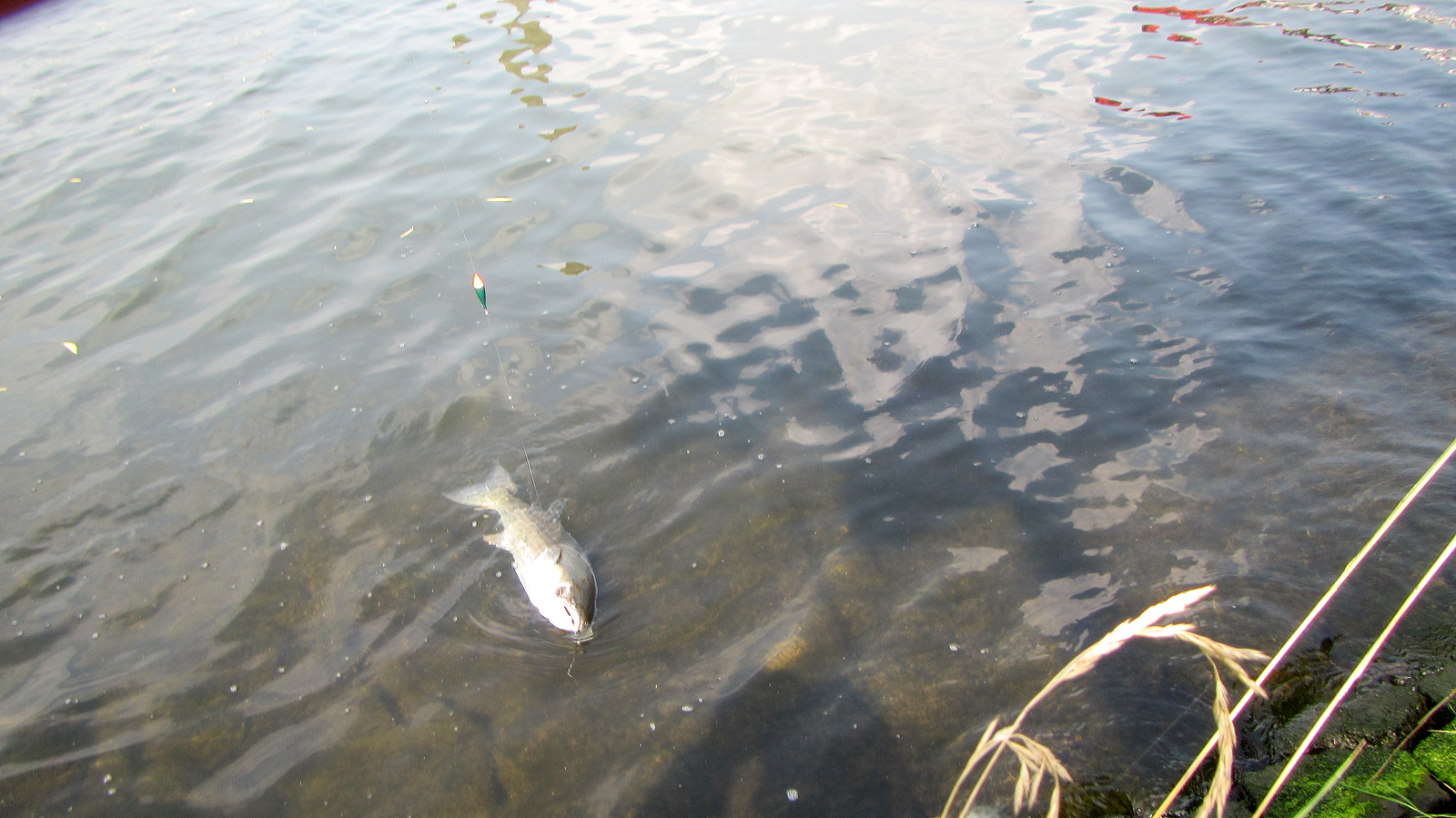 En die kreeg ik ook. Prachtig om te zien hoe de harder het vlokje pakte en rustig doorzwom. M’n dobbertje zwabberde ter bevestiging dat inderdaad mijn vlokje was gepakt…. Hangen!