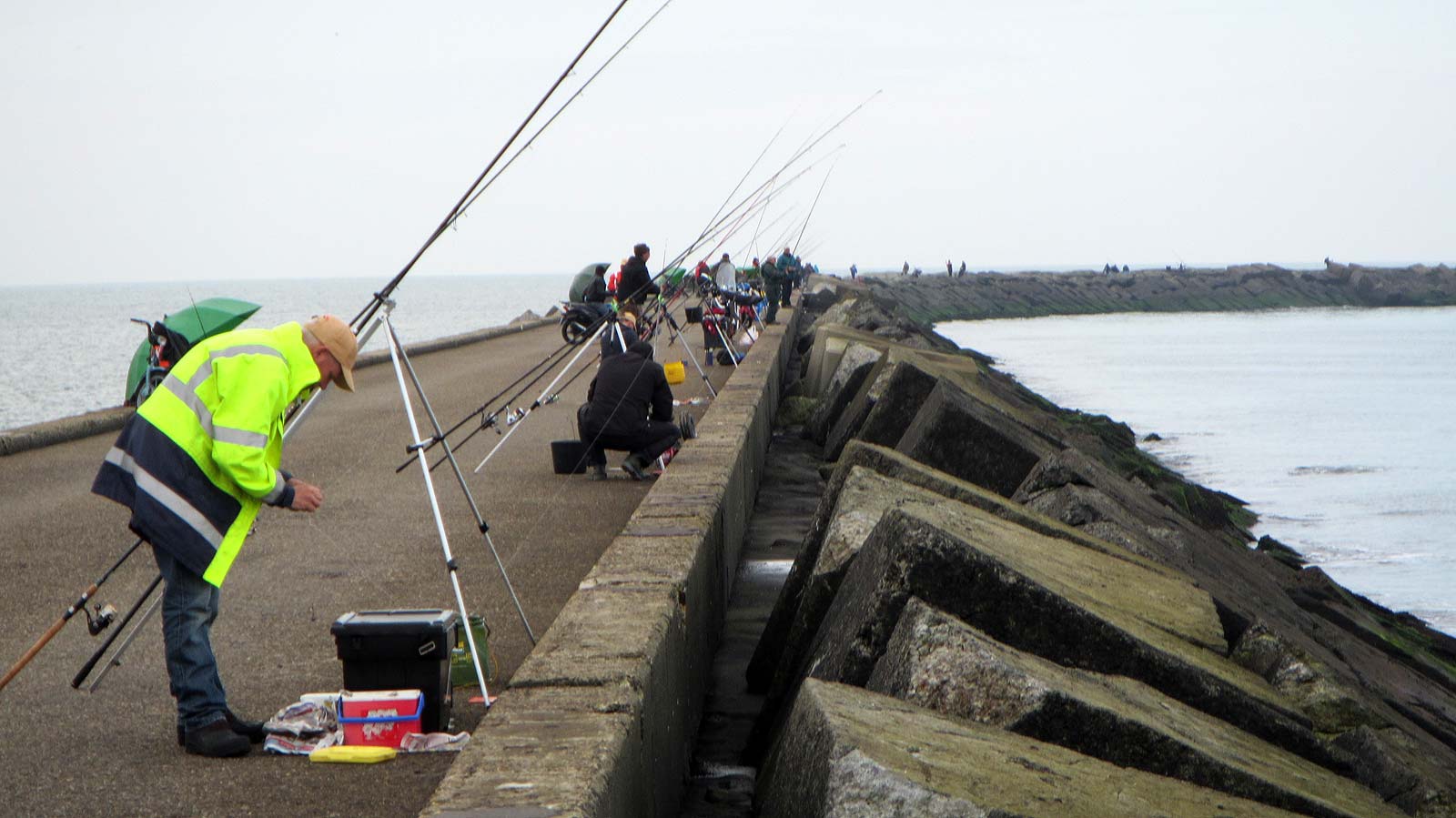 Helaas was de ‘verderweg’ visserij namelijk nog steeds karig zodat veel deelnemers de slijmvis, huizend tussen de blokken aan de waterlijn, bevisten. En met succes, want de prijswinnaars hadden, naast wat ‘gewone’ vis allemaal meerdere tot vele slijmvissen weten te vangen.