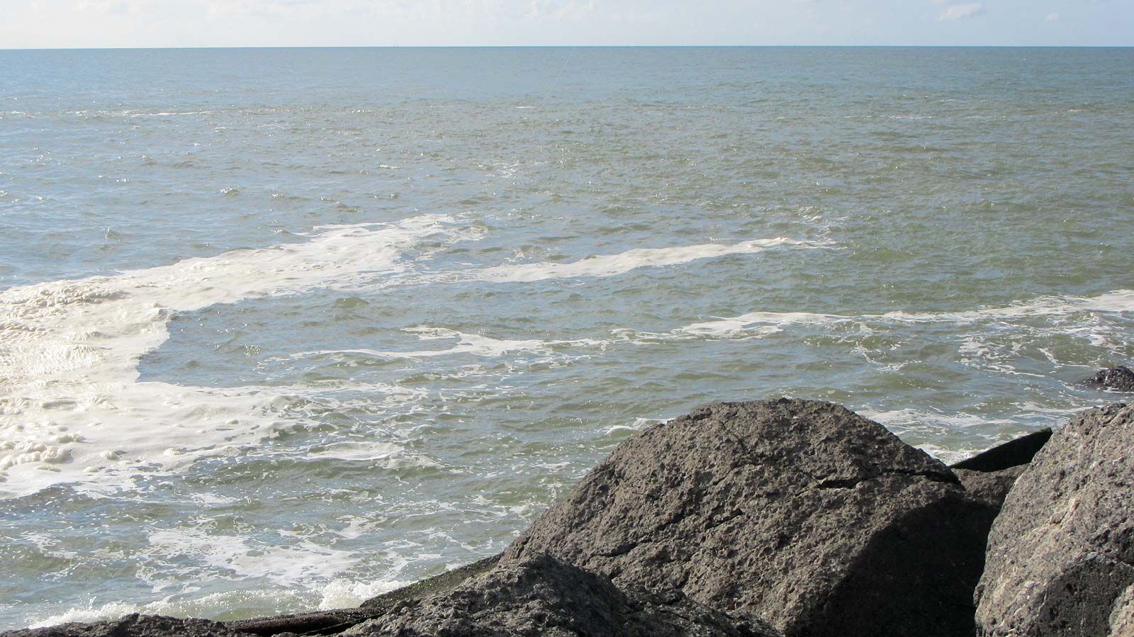 De stevige stroming langs de pier ging voor de verandering eens van rechts naar links en bracht af en toe een ‘bruine kolkende vlek’ mee, met eventjes meer stroming tot gevolg.