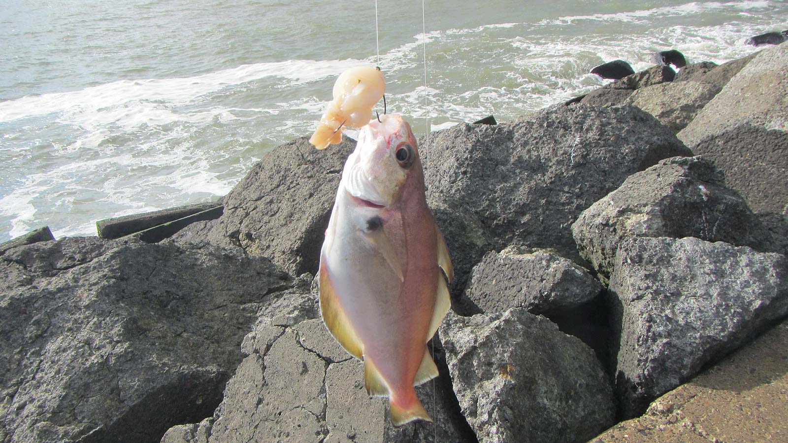 Levende mesheft kan een prima aaskeuze voor de dag zijn. Zes vissen, vier soorten: op sommige dagen, zeker in deze tijd van het jaar, gaat soortenjagen vanaf de pier vanzelf…