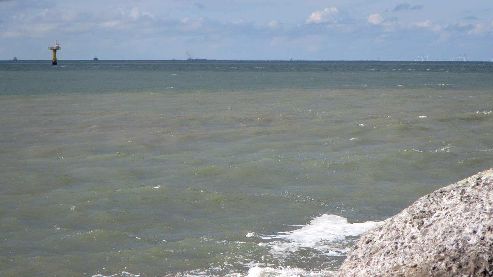 De lucht begon op te klaren en het zonnetje werd voelbaar. Het was mooi om te zien hoe de stromingen het water kleurden.