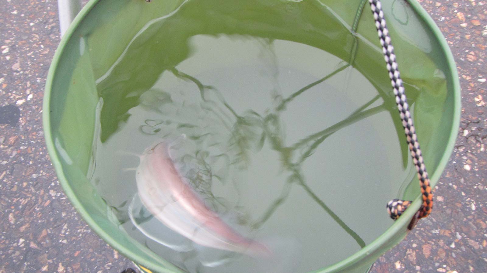 Met nog een wijting en een flinke spiering stopt de teller op vijf vissen, waarmee ik vooral m’n directe buren Jan en Peter heb ‘verslagen. De spiering gaat mee om een keertje uit zwemmen te gaan in een Amsterdamse gracht.