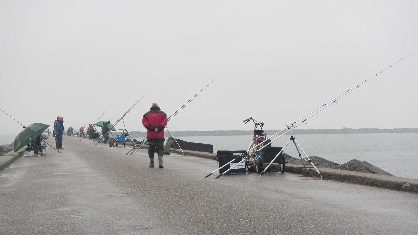Vandaag blijken de spekkopers in het midden van het parcours te staan. Uiteindelijk winnaar Rene (27 vissen) staat daar tussen en vangt ook nog de grootste vis van de wedstrijd: een wijting van 43 centimeter, voor Nederlandse begrippen een behoorlijke joekel! Bas (16 vissen) wint vak B nipt van Arie (16 vissen). Kijk hier voor de volledige uitslag.