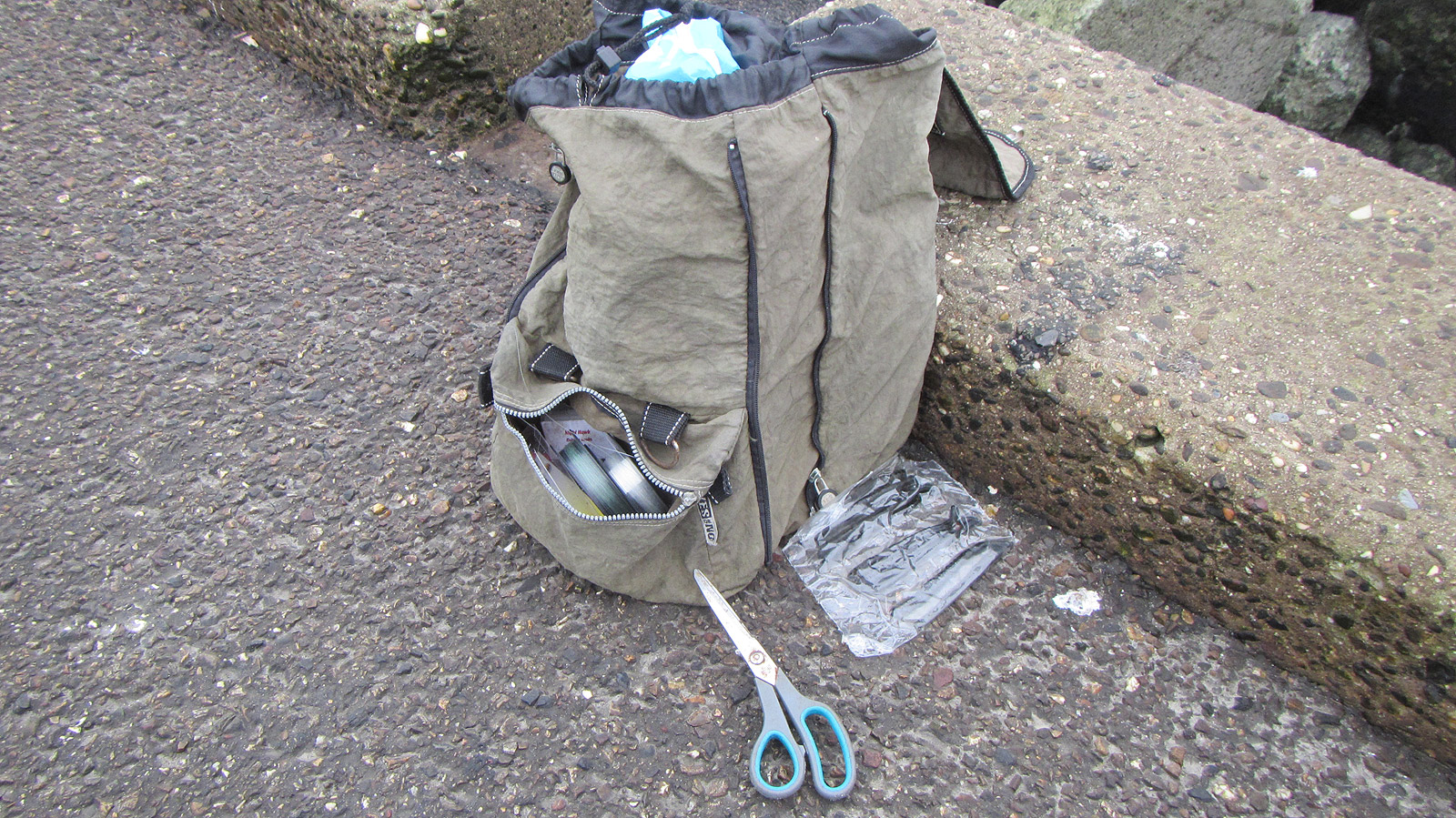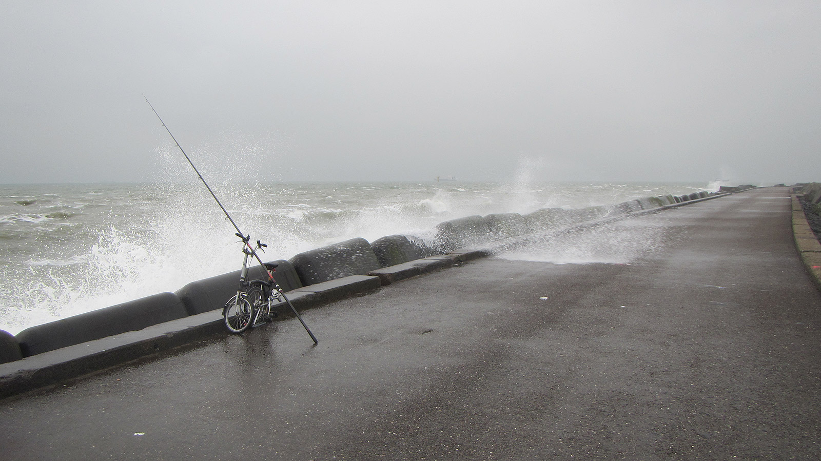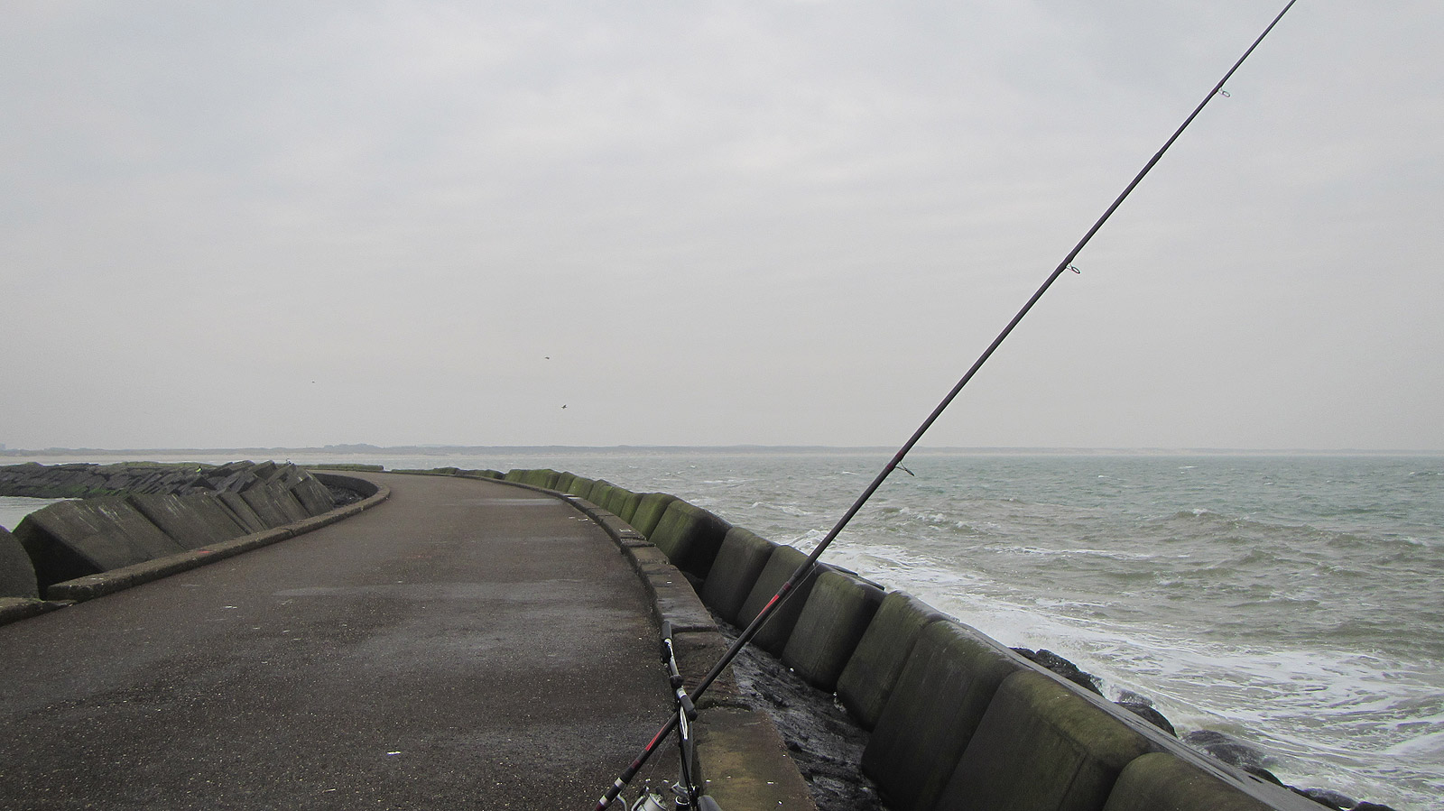 Vrijdag is de vorst er een beetje uit en de ZW wind lijkt ook mee te vallen. Op naar de Zuidpier voor een gul! Hoog water valt rond 14:30 uur en ik arriveer om 12:30 uur. Ik heb deze keer zo min mogelijk materiaal meegenomen en dat lukte prima: de vijf meter Forcemaster mag weer eens aan de bak. De rest past in een klein rugzakje. Diepvriestappen gaan aan de haak.