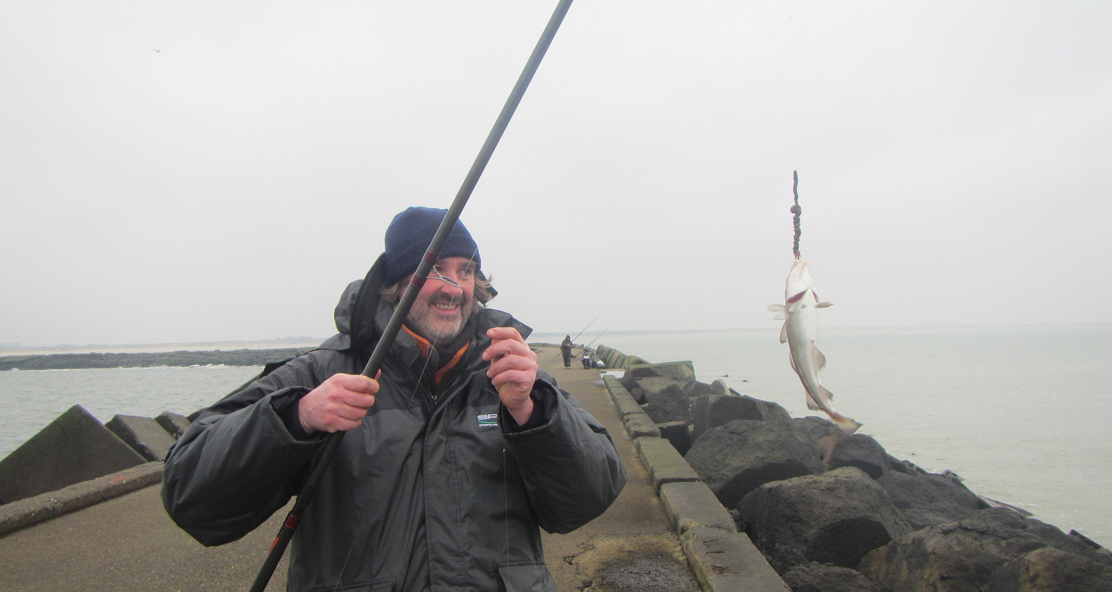 De volgende dag hebben we een afspraak gemaakt om een dagje (voor hem de eerste keer) op de Zuidpier te vissen en bij te praten. Jacques vist het liefst op snoekbaars vanaf de kant in wateren in het zuiden van Nederland. Hij vangt zelf z’n aasvisjes met de hengel en een snoek of een roofblei zo af en toe laat hij ook niet liggen.