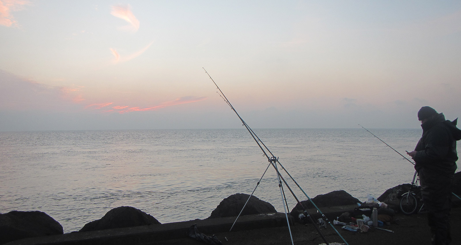 J-G-1-IMG_1227 En de tweede ook! J-G-2-IMG_1228 Als een goed gastheer betaamt, beaas ik de haken en werp in en laat de gast de vissen vangen. Terwijl ik de derde hengel optuig om schar te vangen, is daar aanbeet nummer drie. En die mag mee! J-G-3-IMG_1231 Na een uurtje vissen is het ‘vang’stukje van de dag ook al geslaagd. Jacques heeft inmiddels de routine door en we babbelen al vissend en vangend lekker verder over vroegâh. J-G-4-IMG_1232 De scharrenhengel levert na de tweede worp een schar op (jaja, m’n eerste vis van de dag ;-), dus ook die demonstratie is geslaagd. Marc-Schar-IMG_6939- Volgens het scenario moet er tijdens een dagje op de pier ook een zeehond gezien worden. Een mooie grote grijze duikt even later op en zwemt op 200 meter uit de kant voor ons wat heen en weer. V2-IMG_1237 De wildspotter in Jacques mag vandaag ook even en weet ‘m de fotograferen. Het plaatje wordt vandaag niet geheel compleet, want de bruinvissen laten het bij ons in de buurt afweten. seehondIMG_6944- Het vissen gaat ondertussen in volle hevigheid door, want er volgt een periode van aanbeten die we door vastlopers dan wel losschieters missen. Vissen duiken tussen de stenen of hebben de haak nog niet goed in de bek. (‘Snoekbaarsvissers slaan sneller’, iets voor een bumpersticker?).