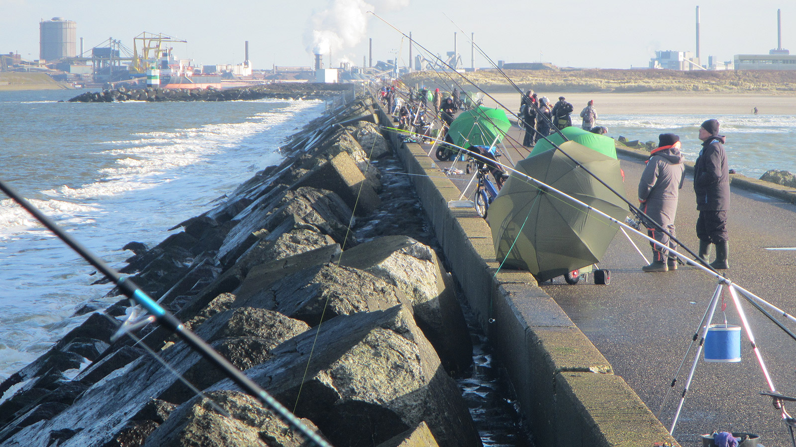 Met de andere hengel probeer ik met dunne hoofdlijn en geclipte onderlijnen zo ver mogelijk te komen voor wijting of schar. Vooral om wat meer routine op te bouwen in het werpen. Elk kwartiertje komen de haken onaangetast terug, maar omdat de directe buren ook niks dichtbij vangen, houd ik deze tactiek vol.