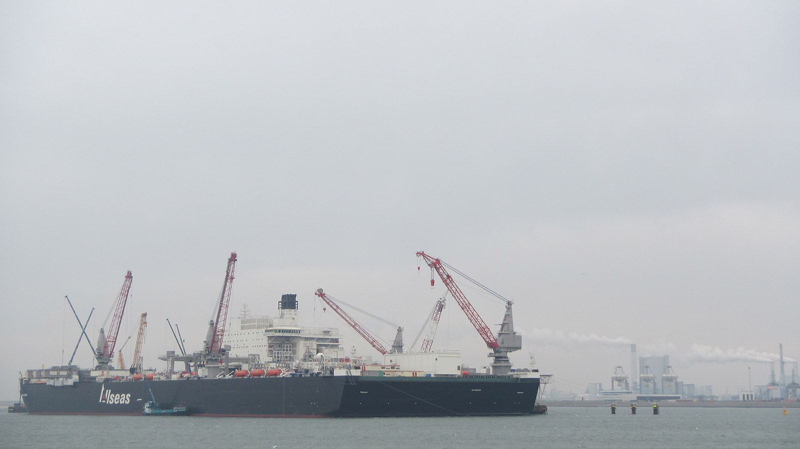 Het hoge water valt rond 18:00 uur in de Waterweg, zodat we er rond 15:00 uur moeten zijn. We spreken echter ruim eerder af en starten om pakweg 11:00 uur met vissen vanaf de Papegaaienbek. Onderweg komen het grootste hefschip ter wereld tegen, de ‘Pioneering Spirit’, 382 meter lang en 124 meter breed.