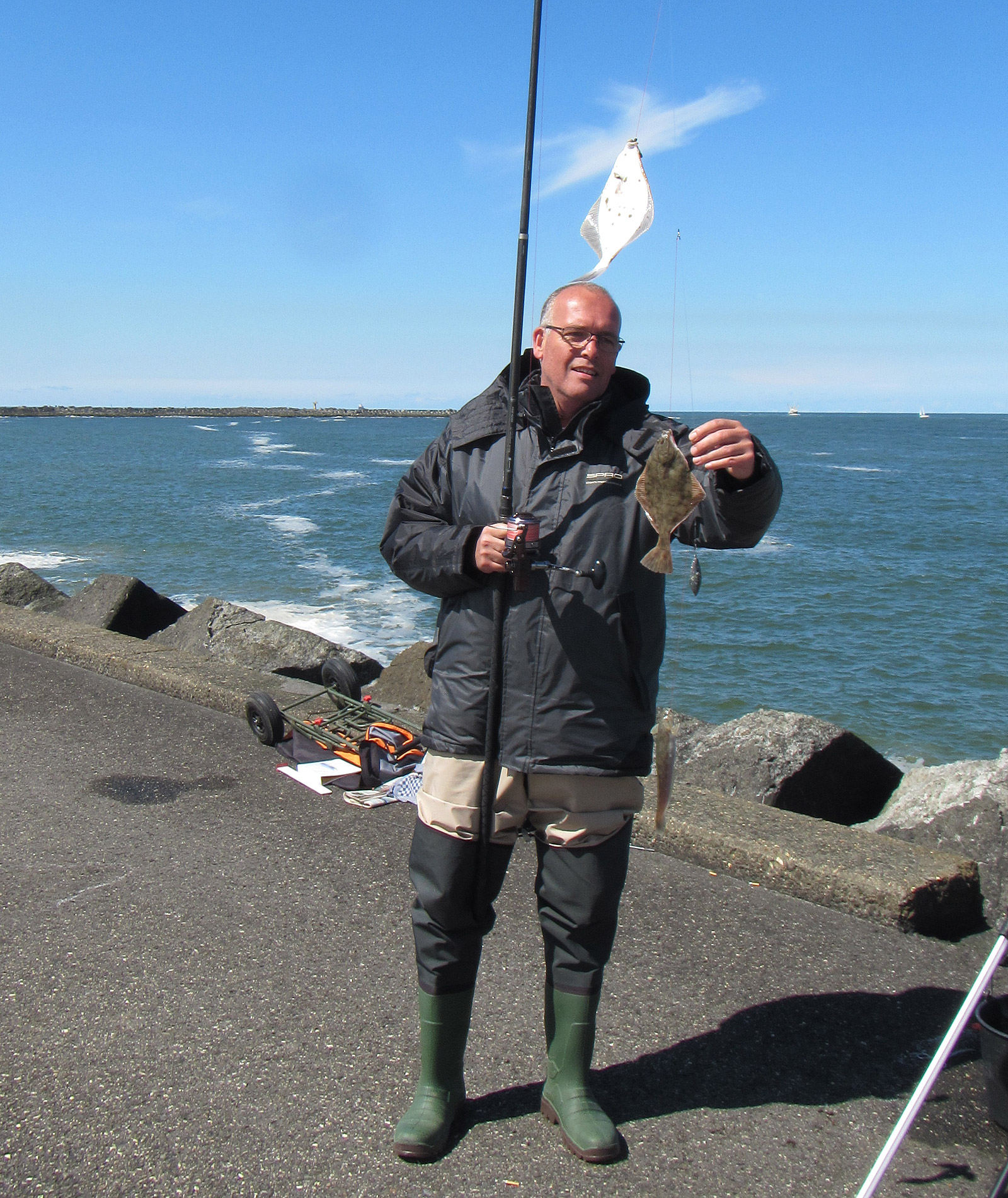 Ook ik blijf de hele wedstrijd vis vangen, soms met een iets langere tussentijd, maar mijn vangst loopt door en ik eindig om 15:00 uur op 14 vissen. Een stuk of tien redelijke tot flinke botten en een paar scharren.