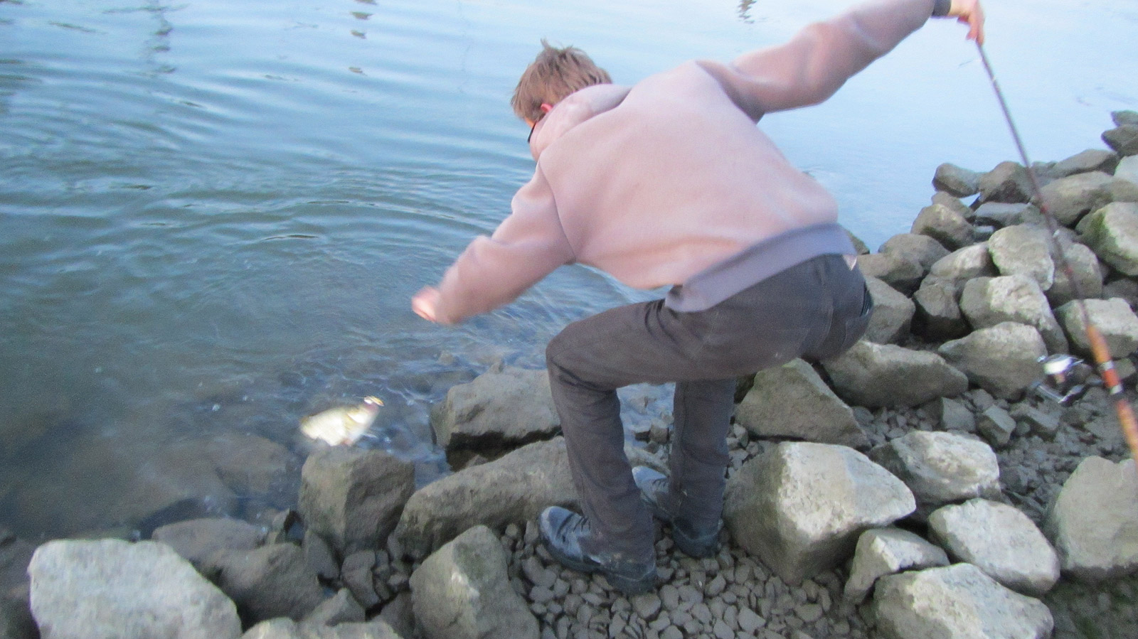 Het blijkt een flinke winde te zijn, die zich in het spinnertje heeft vergist. Jacques maakte dit, in de jaren dat hij er vist, nog niet mee. Het is met stip mijn grootste winde tot nu toe, maar we vergeten ‘m te meten.