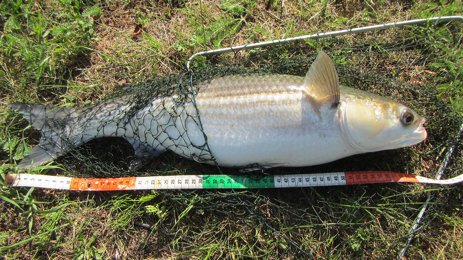 De vis laat zich verder zonder problemen naar het net dirigeren. Het is toch weer een mooie. Deze krijgt wél een lintje en blijkt 62 centimeter lang.