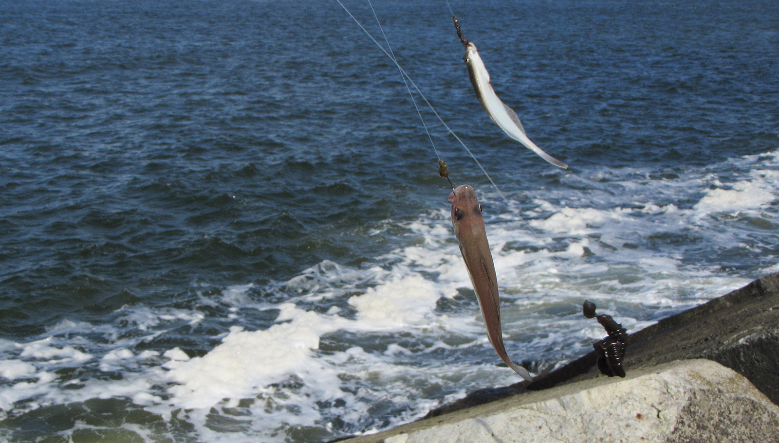 Bij de volgende draai vang ik een van de daders van de lege haken samen met een wijting.