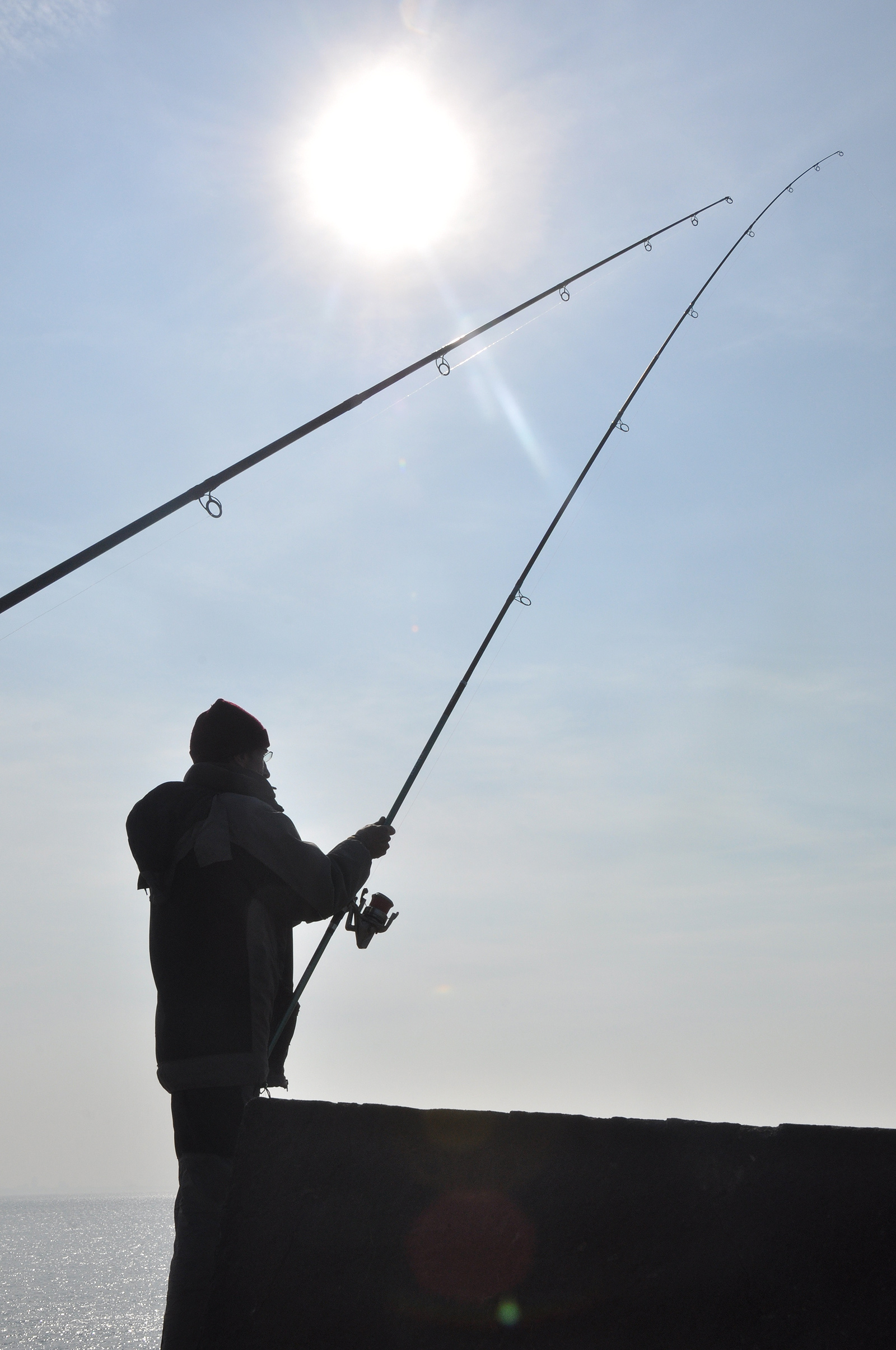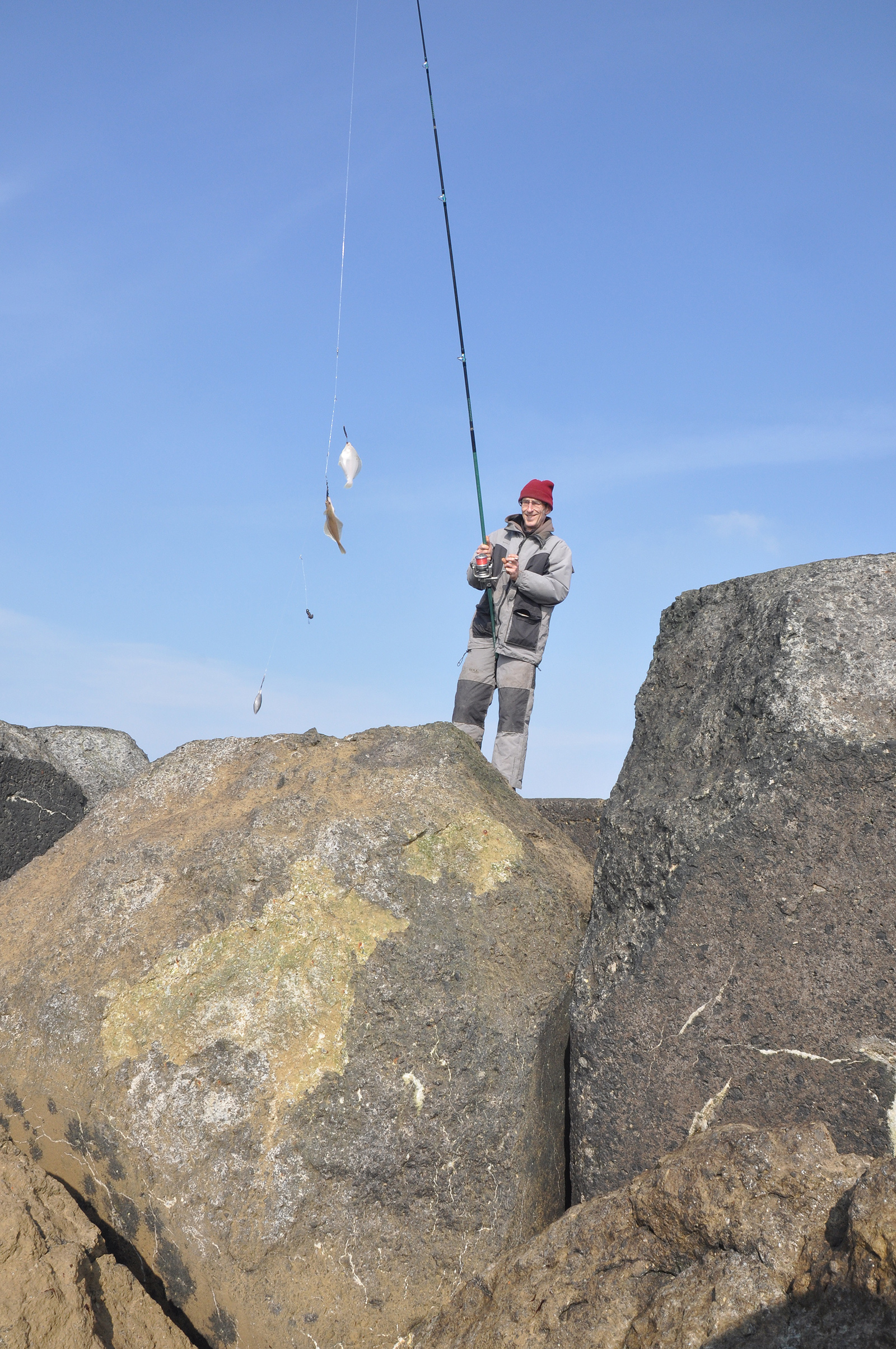 De aanwezige vissers hebben het niet druk en hebben nog geen gul gezien, wel een eerste zeebaarsje van het jaar, gewoon op pieren gevangen.
