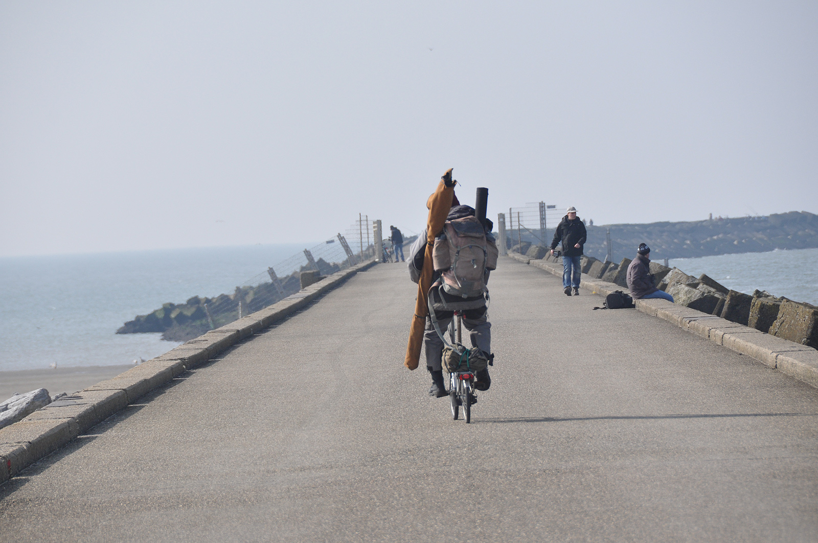 Dan komt de stroming er in en bouw ik deze hengel ook om onder de kant te gaan vissen. In de door de oostenwind ‘platte’ zee zijn de kolken in het water goed te zien.