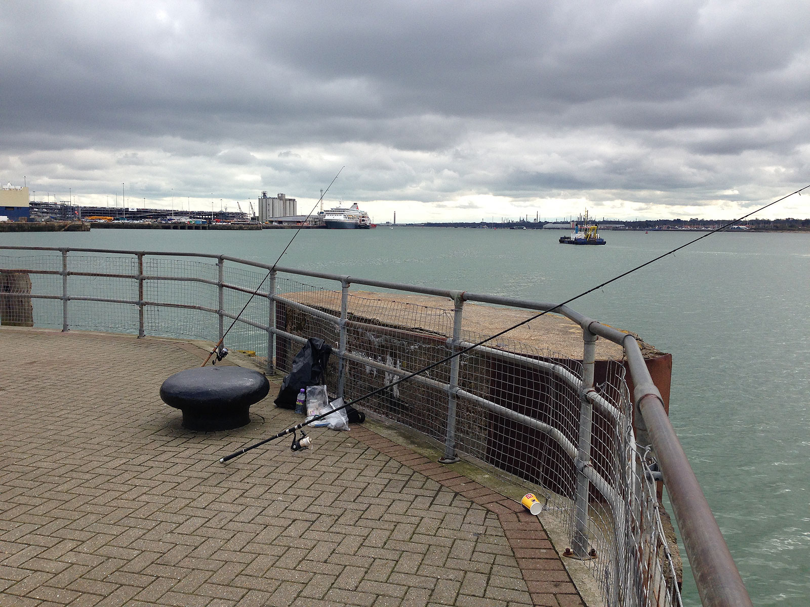 Ik ben nog nooit in dat stukje Engeland geweest, dus ga het internet op voor informatie. ‘Fishing Southampton’ levert al bruikbare tips op. De hengelsportzaken ter plekke staan ook nog prima aangegeven. De Town Quay lijkt een prima plek om voor het eerst en eenmalig te gaan vissen. Het is de pier waar de ferry’s vertrekken en ik verwacht niet de enige visser te zijn.