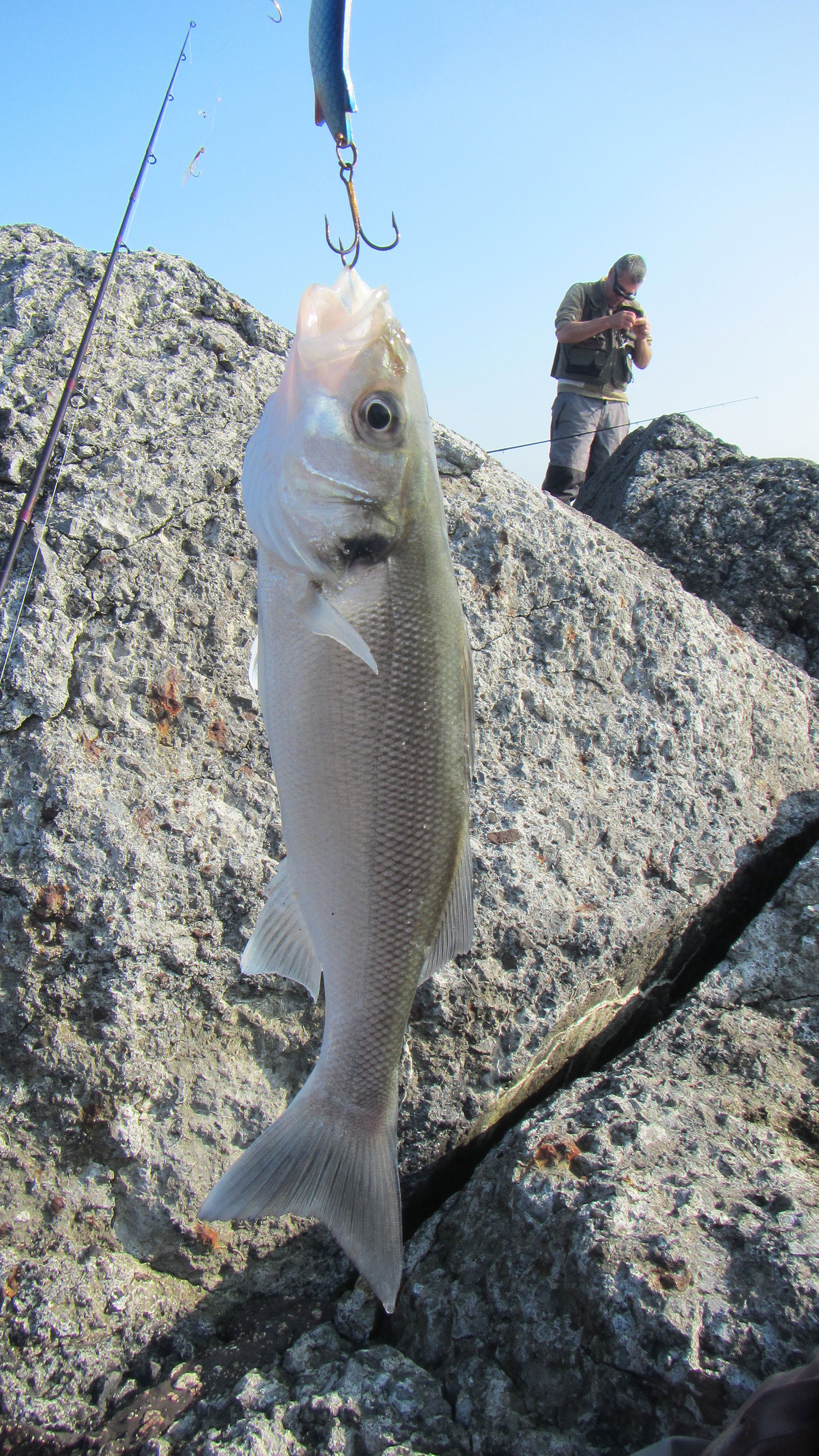Na een aantal worpen voel ik een klein ‘boemetje’: vis! Niet groot is direct te voelen, maar wel strijdlustig: fint of makreel of zeebaars?