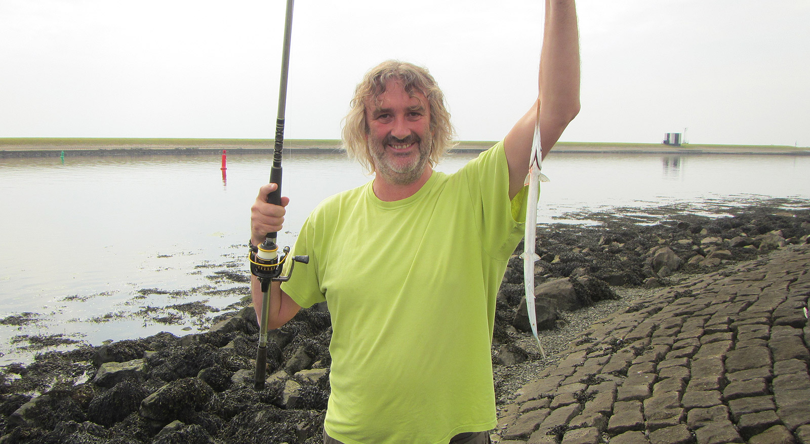 Vandaag gaan we achter de geep aan. De afspraak staat al een tijdje, Jacques heeft nog niet eerder op geep gevist. Maar wegens de bedroevende geepvangsten rond de pieren van IJmuiden durf ik ‘m dit jaar niet uit te nodigen.