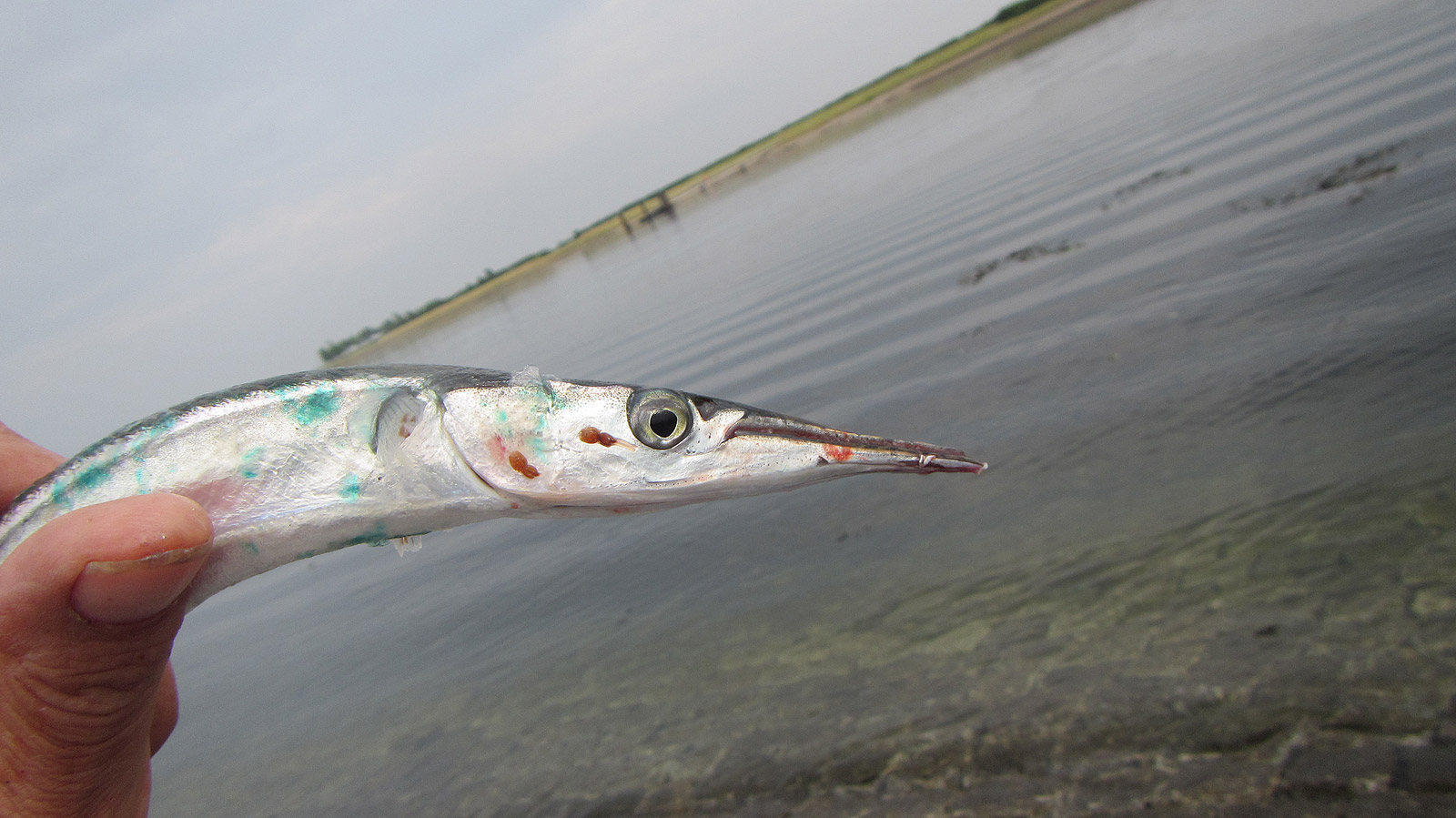 Er gaan ook de nodige vissen weer terug. Ik vang een kleintje met een nog wel erg korte snavel.
