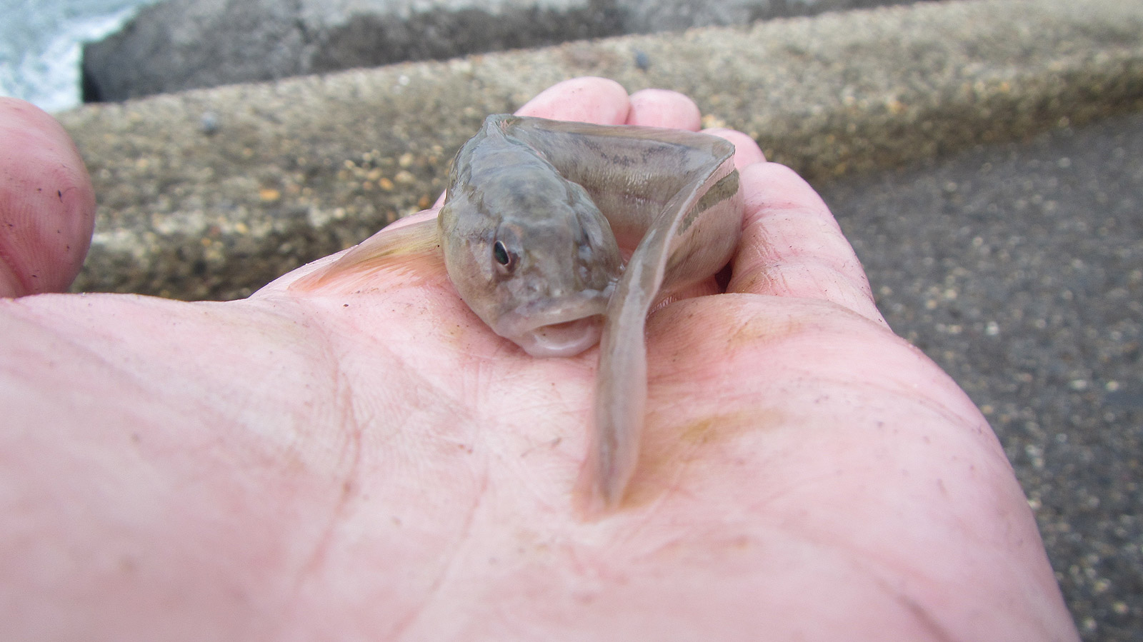 De tweede hengel krijgt krijgt ook diverse opdrachten: afgewisseld een tweehaaks paternoster met zagers voor een zeebaars langs de kant (zonder resultaat) of een slijmvistuigje om héél erg dichtbij te vissen in de gaten tussen de blokken waar de slijmvissen huizen. In mijn geval is dat tuigje trouwens een bijna afgedankt paternostertje met afhoudertjes en een steen als gewichtje. Vastzitten en je materiaal verspelen is schering en inslag.
