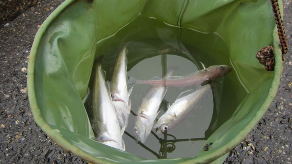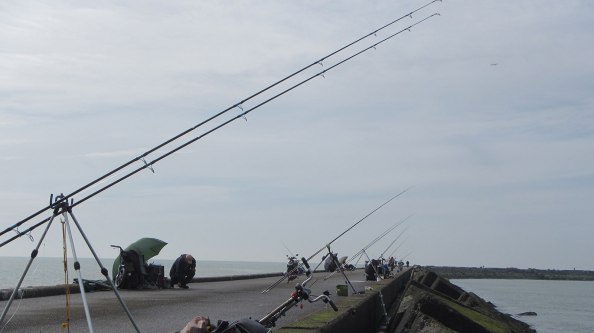 Variaties in onderlijn, afstand of aas (pieren, zagers, tappen) leveren helaas ook geen succes. Ik vang 12 vissen, goed voor een 20ste plaats. Twee scharretjes en 10 wijtingen, de grootste vis 25 centimeter. Tsja. Er komen hier en daar flinke botten (tot 40 centimeter, grootste vis van de wedstrijd) boven, maar dat maak ik niet mee.
