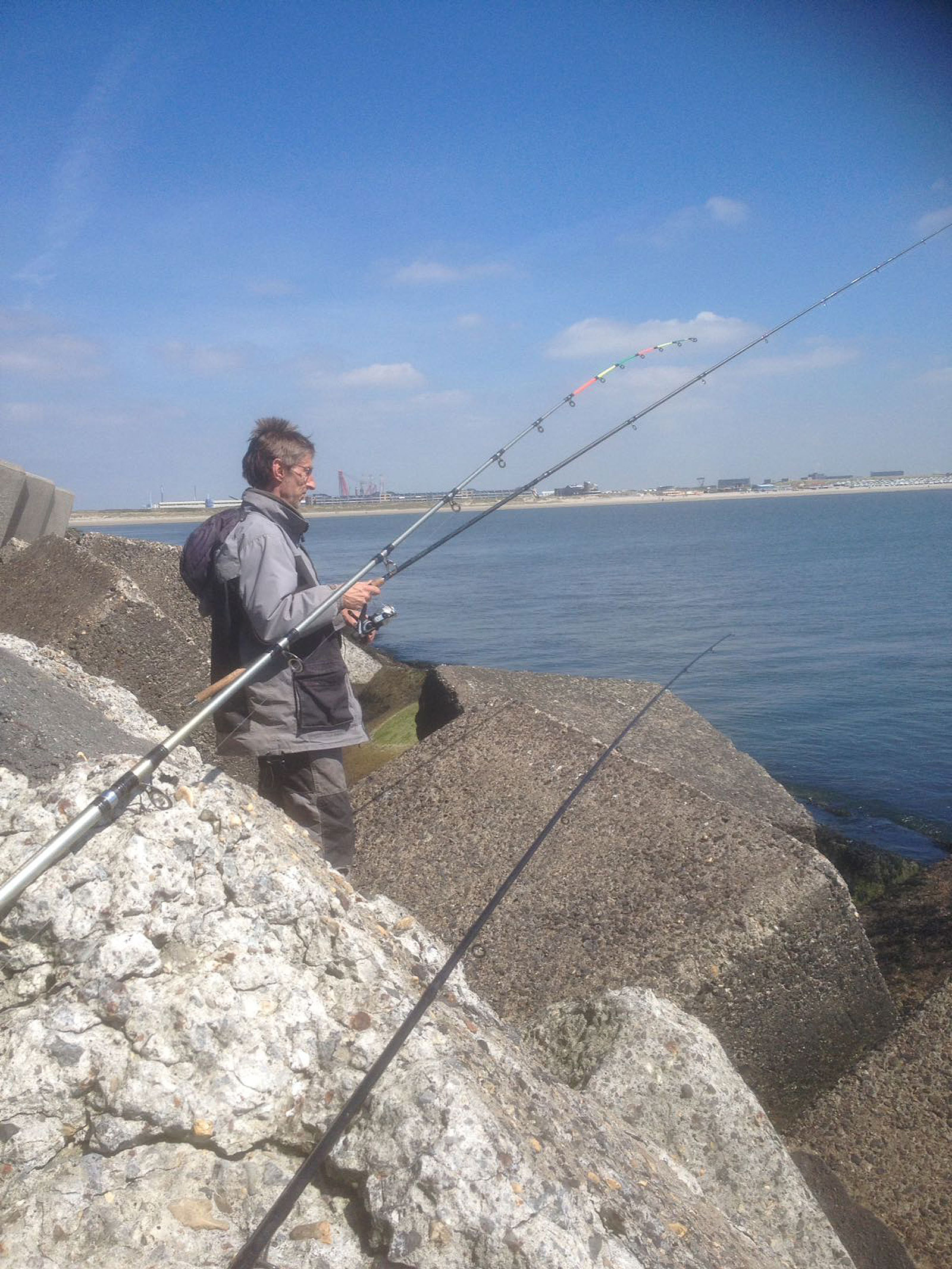 Eén haak of een paternostertje met pieren of zagers en een loodje gooien we in tussen of iets verder van de stenen. Maar helaas, hier blijft het stil op alle fronten. Tijd om te verkassen naar een plekje aan de buitenkant voor platvis..