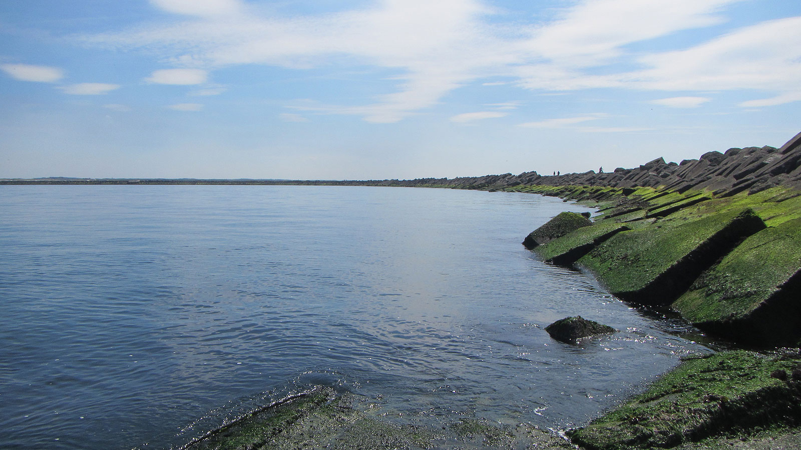 Uiteindelijk toch maar verkassen, al is het alleen al om zelf even een ander uitzicht te hebben en de vliegen wellicht kwijt te raken. Ik vergeet elke keer dat dat ook hoort bij ‘zomer op de pier’.