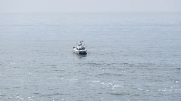 Ondanks de mooie, steeds warmer wordende dag, zijn er weinig vissers. Dankzij het rustige weer drijven er veel kleine visbootjes rond de kop.